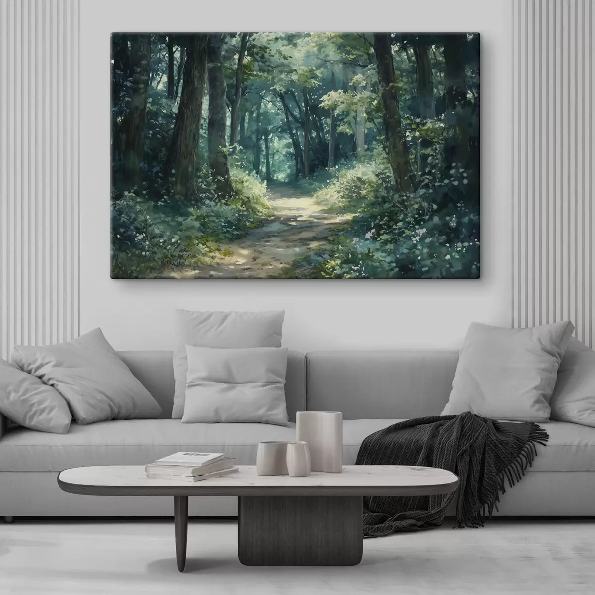 Quadri Foresta verde con alberi e luce solare Nr s44784