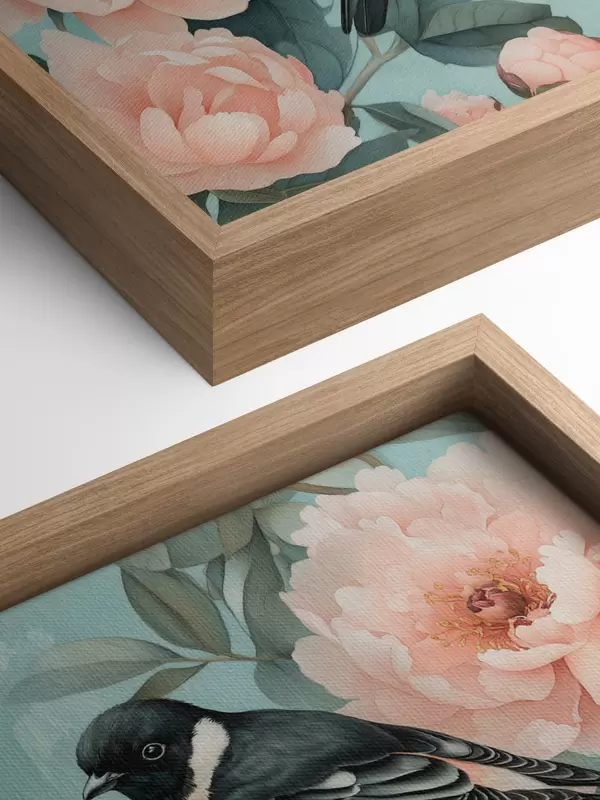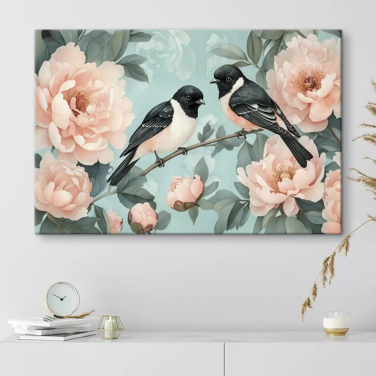 Quadri Due uccelli sul ramo con peonie Nr s44786