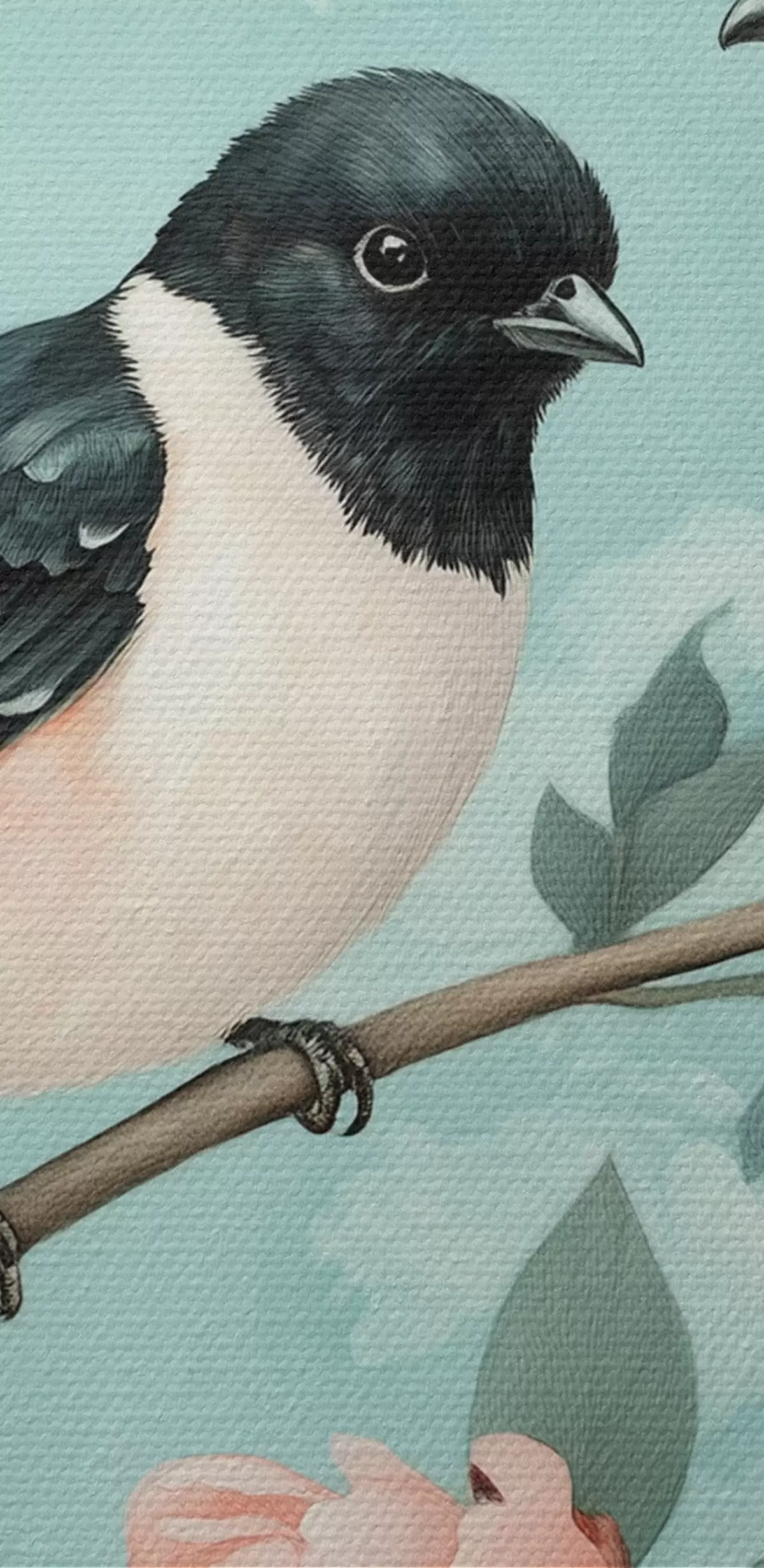 carta da parati Due uccelli sul ramo con peonie  nr. s44786