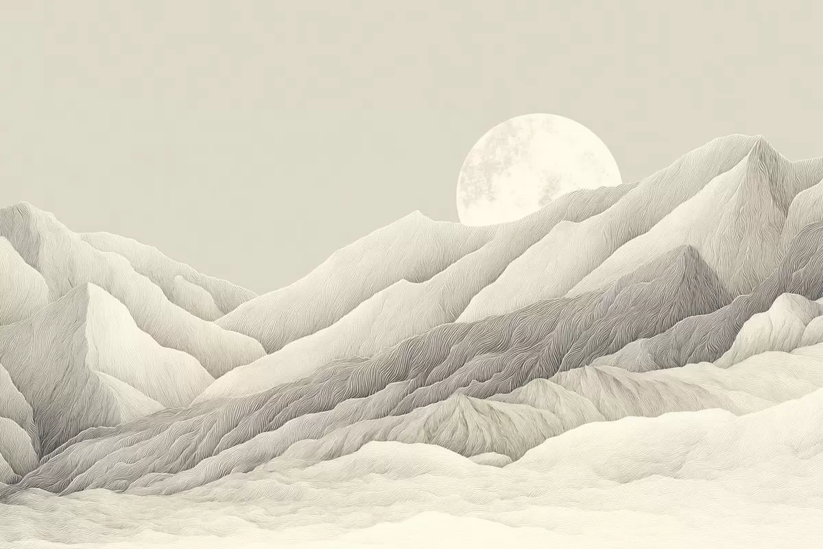 carta da parati Montagne con luna, disegno dettagliato nr. s44788