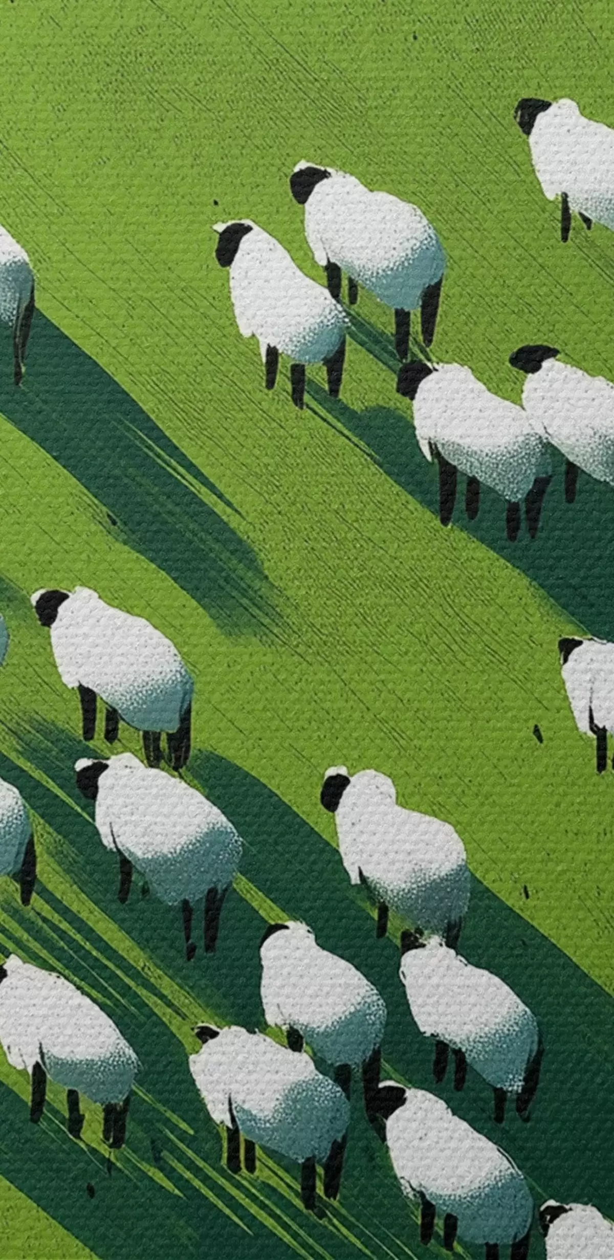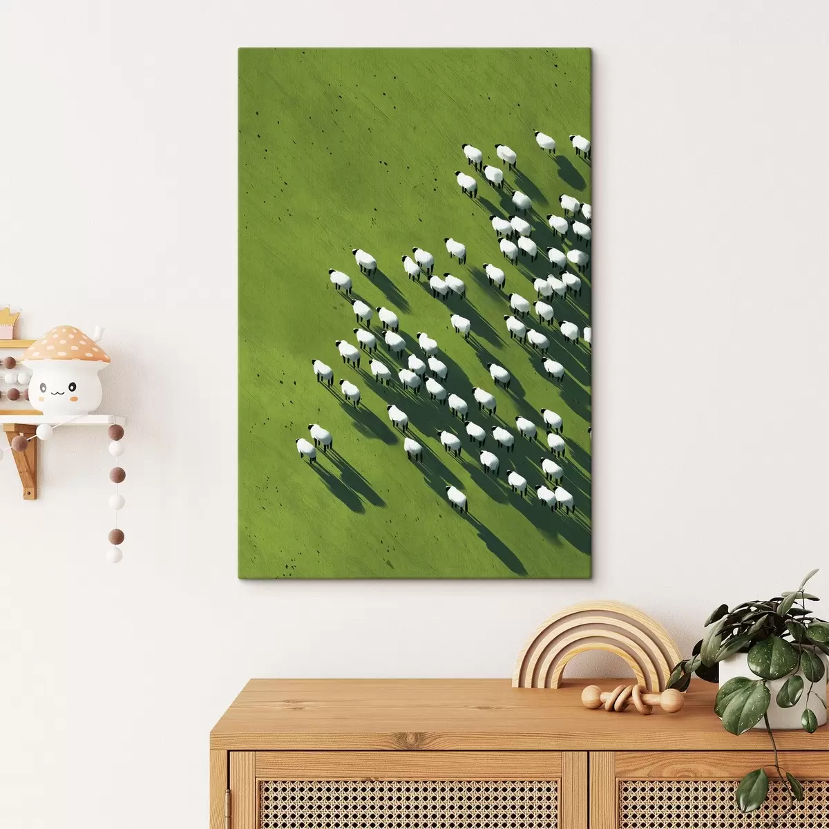 Quadri Campo verde con un gregge di pecore, astrazione, veduta aerea Nr s44793