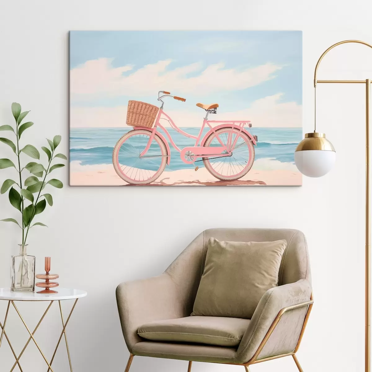 Quadri Bicicletta rosa sulla spiaggia Nr s44808