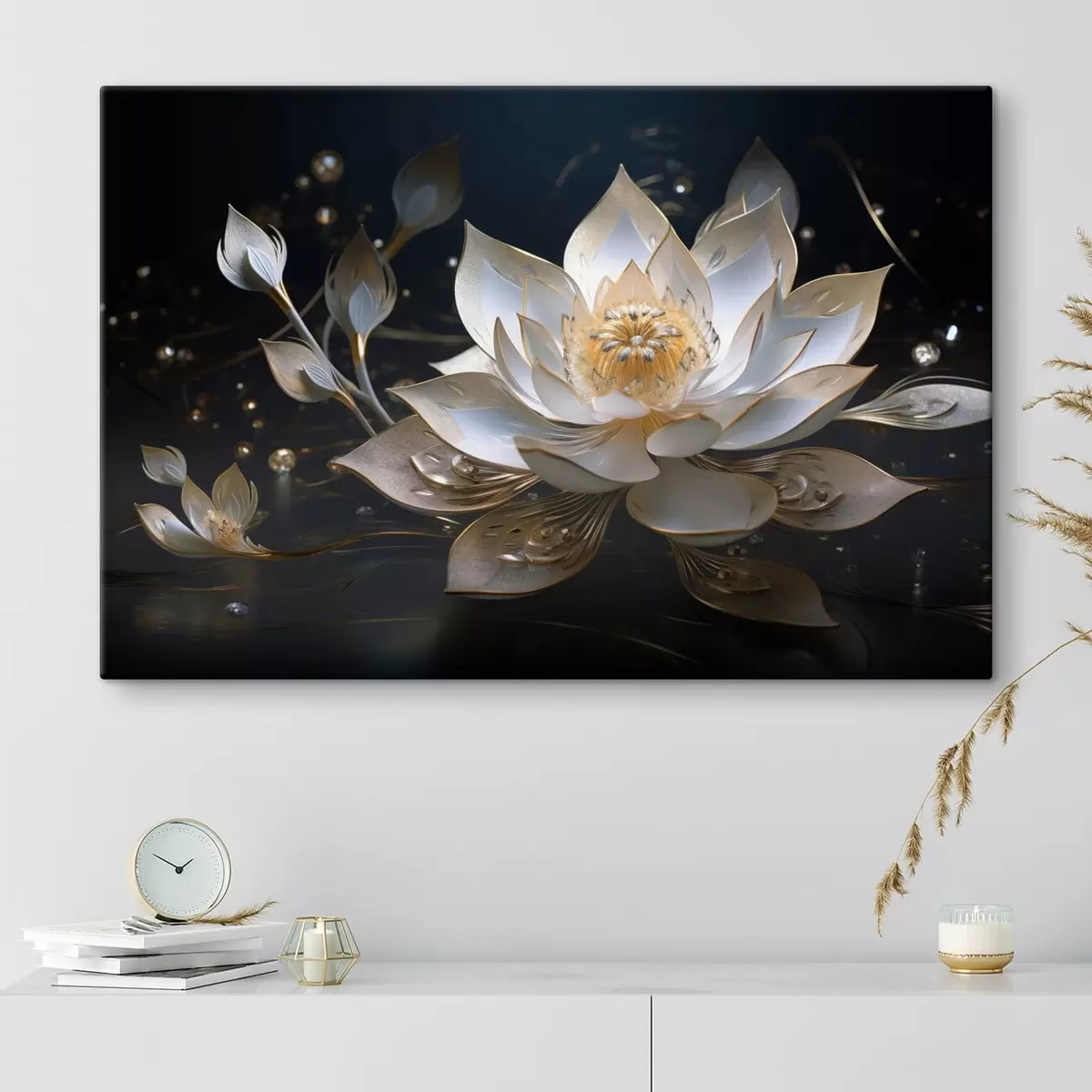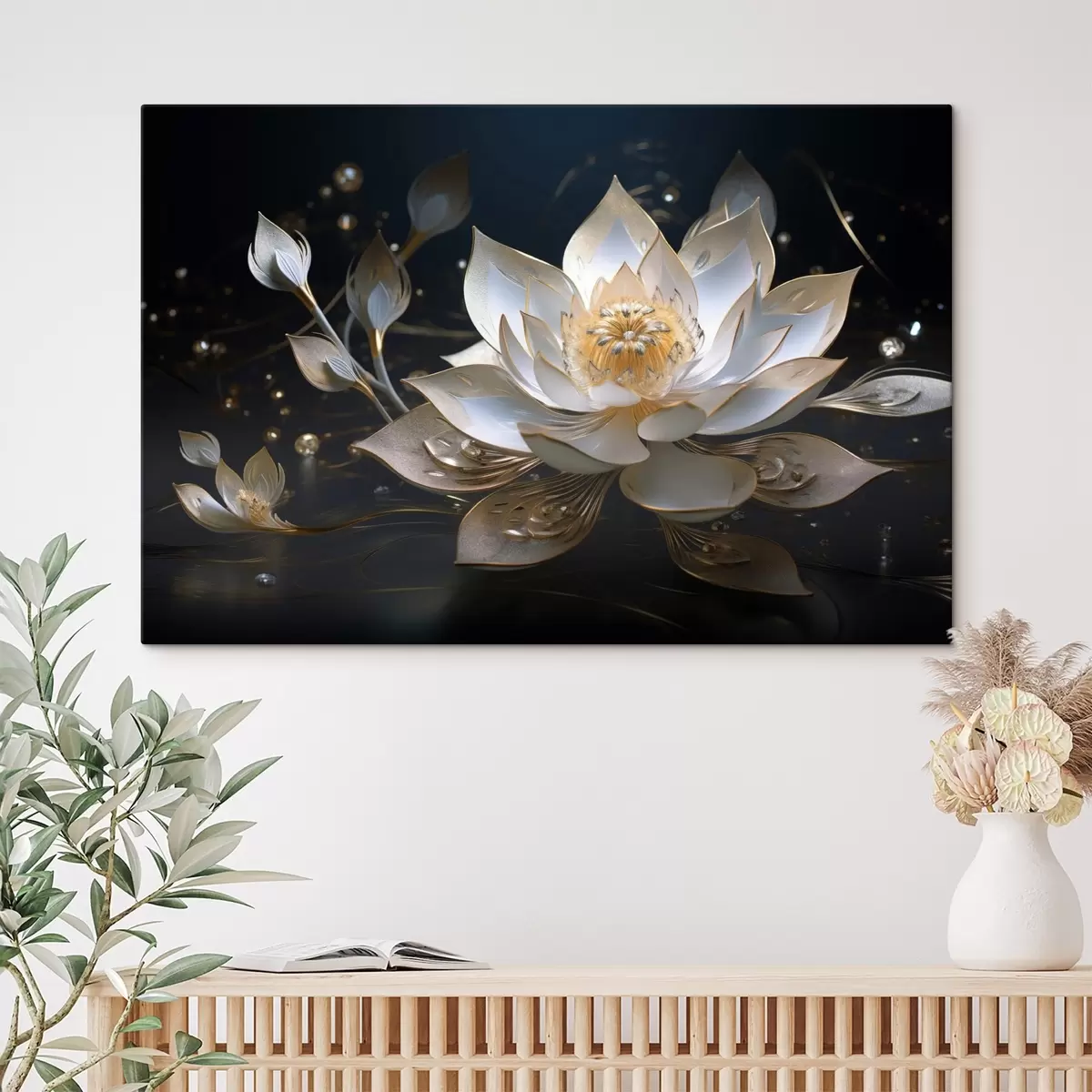 carta da parati Loto con motivi eleganti su sfondo scuro nr. s44841