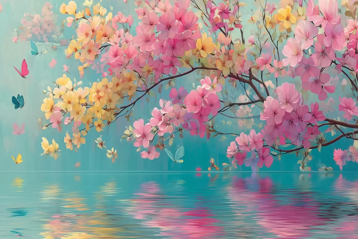 carta da parati Ramo fiorito sull'acqua in stile acquerello nr. s44844