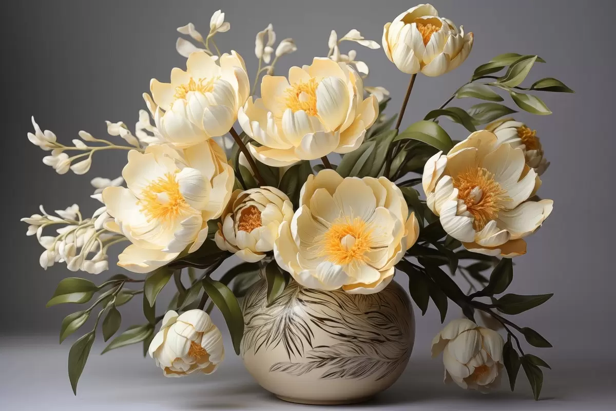 carta da parati Fiori delicati con centro giallo in un vaso a fantasia nr. s44847