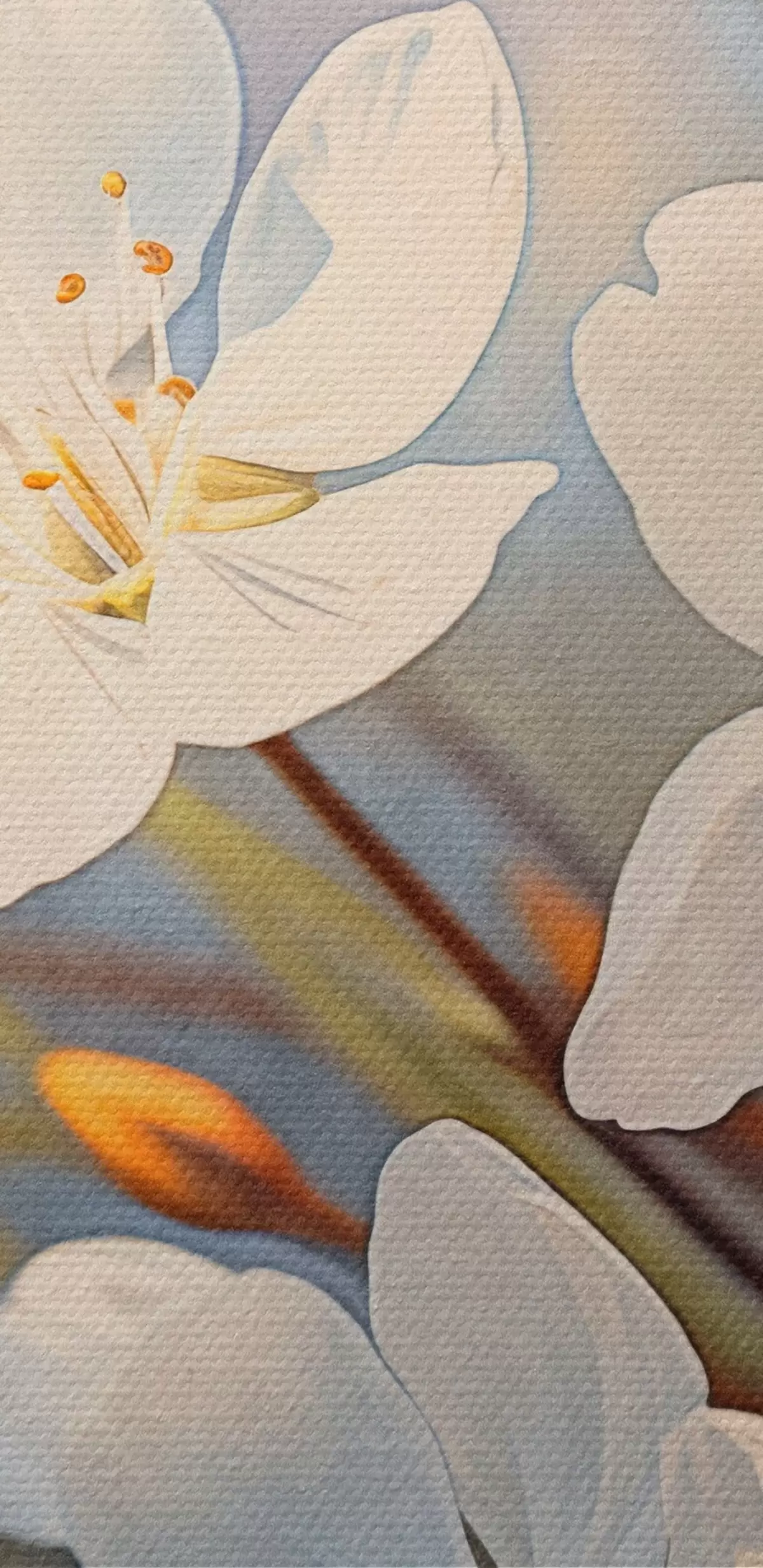 Quadri Fiori di ciliegio bianchi strutturati in stile acquerello, petali delicati, stagione primaverile Nr s44859