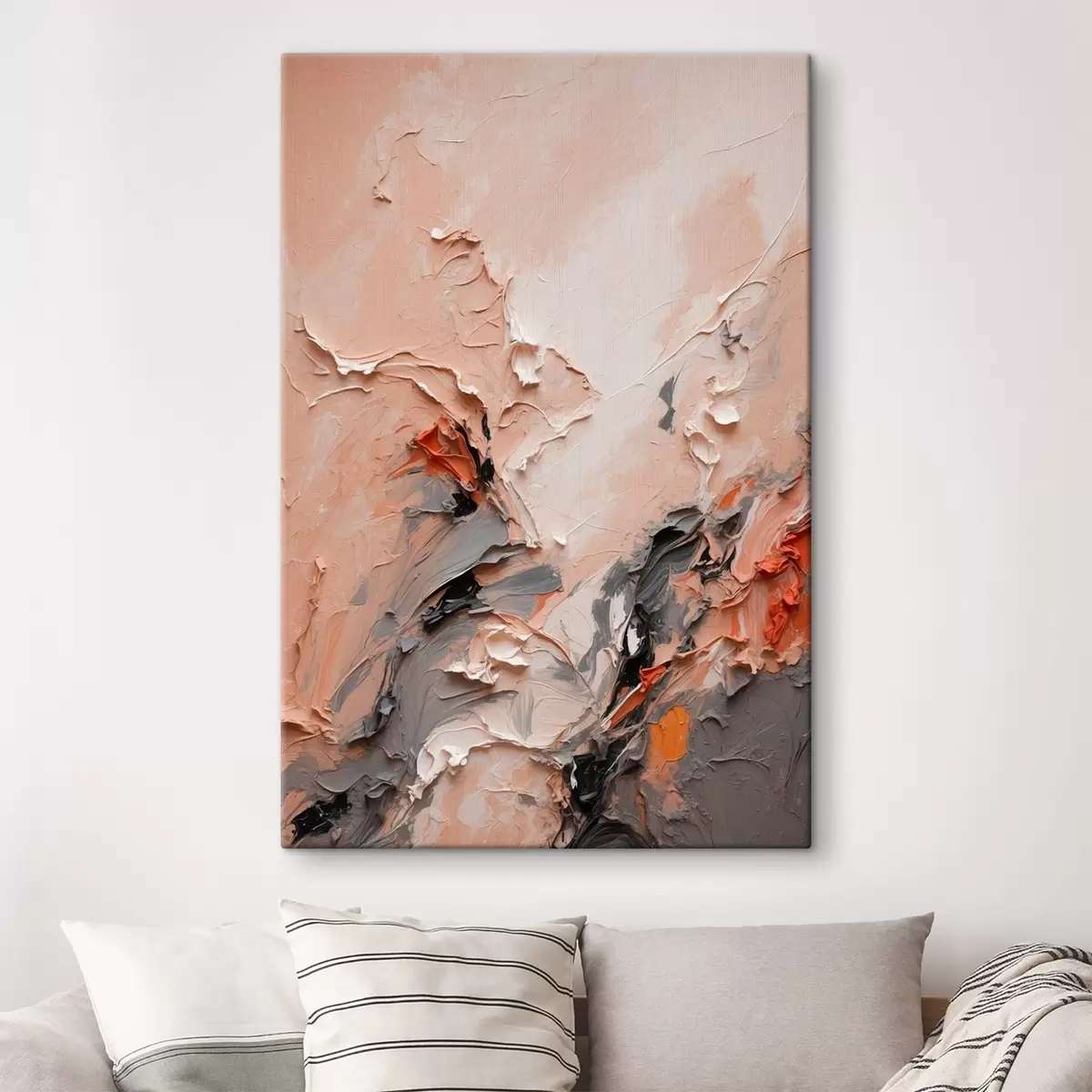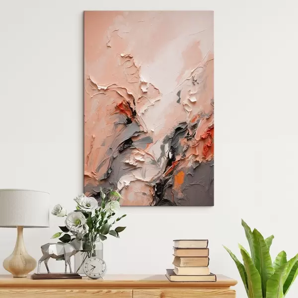 Quadri Astratto nei toni del grigio pesca con tratti strutturati Nr s44873