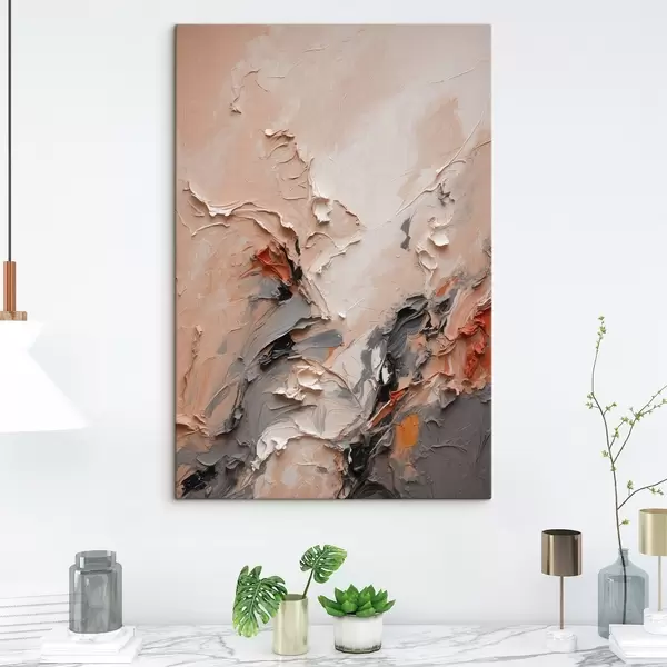 Quadri Astratto nei toni del grigio pesca con tratti strutturati Nr s44873