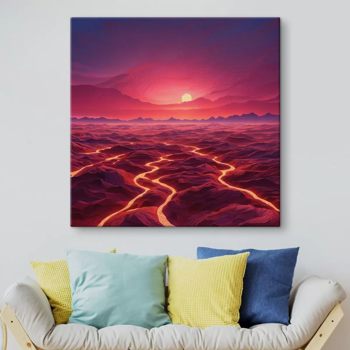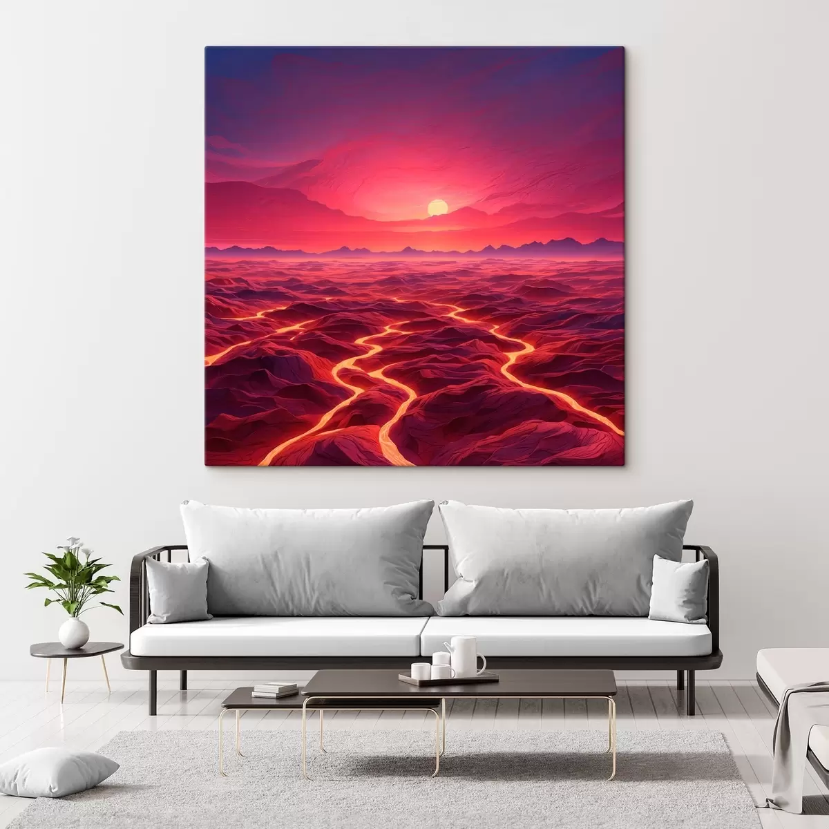 Quadri Paesaggio caldo con colate di lava sotto un cielo rosso Nr s44886