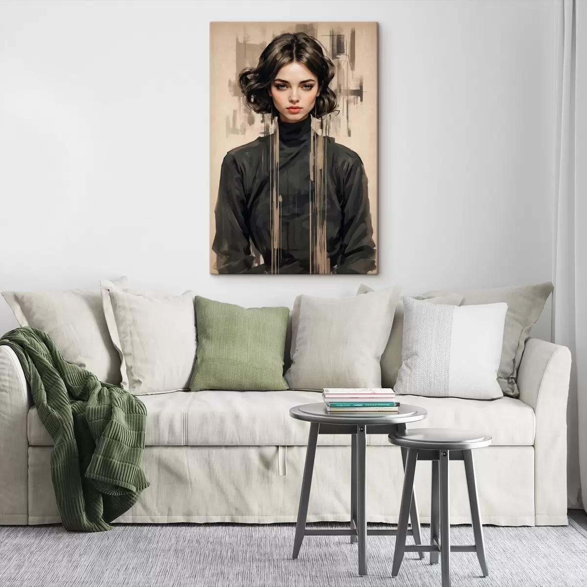 Quadri Ritratto di donna con capelli corti scuri su sfondo astratto Nr s44890