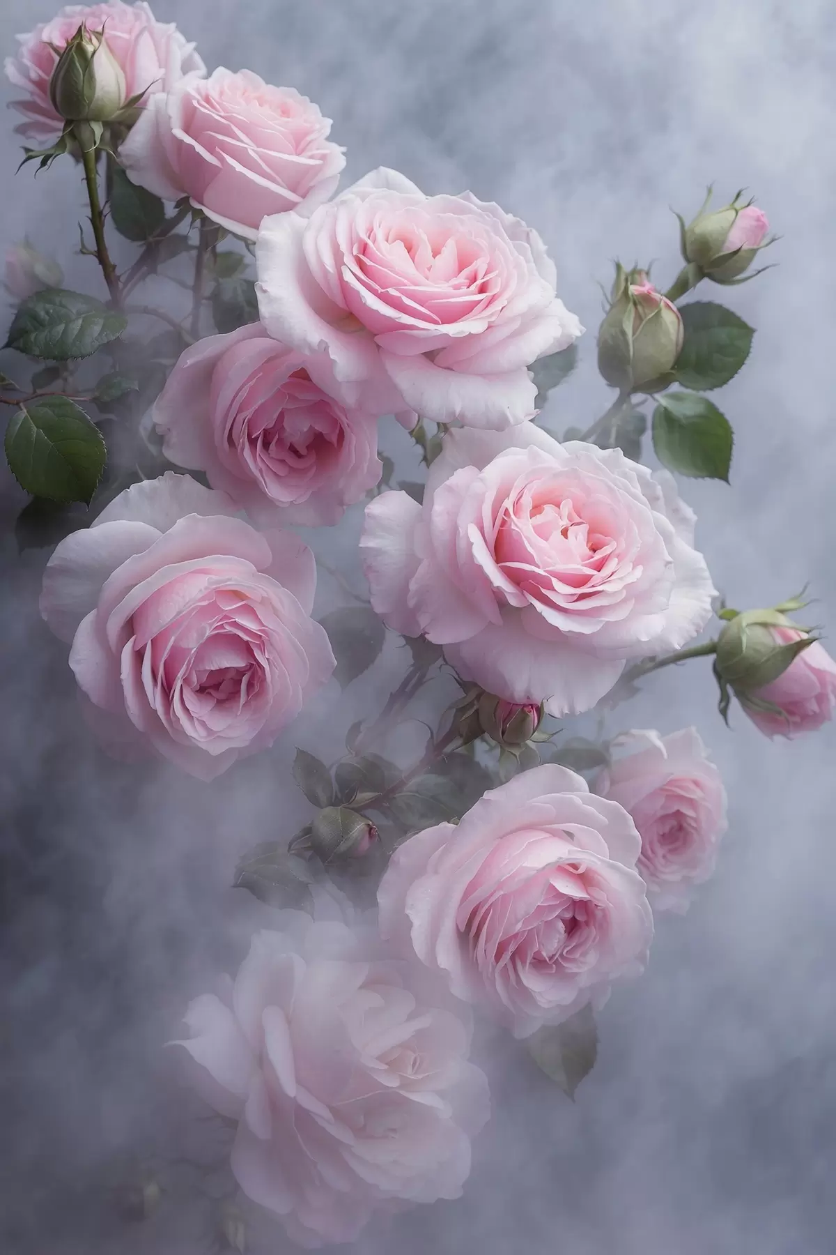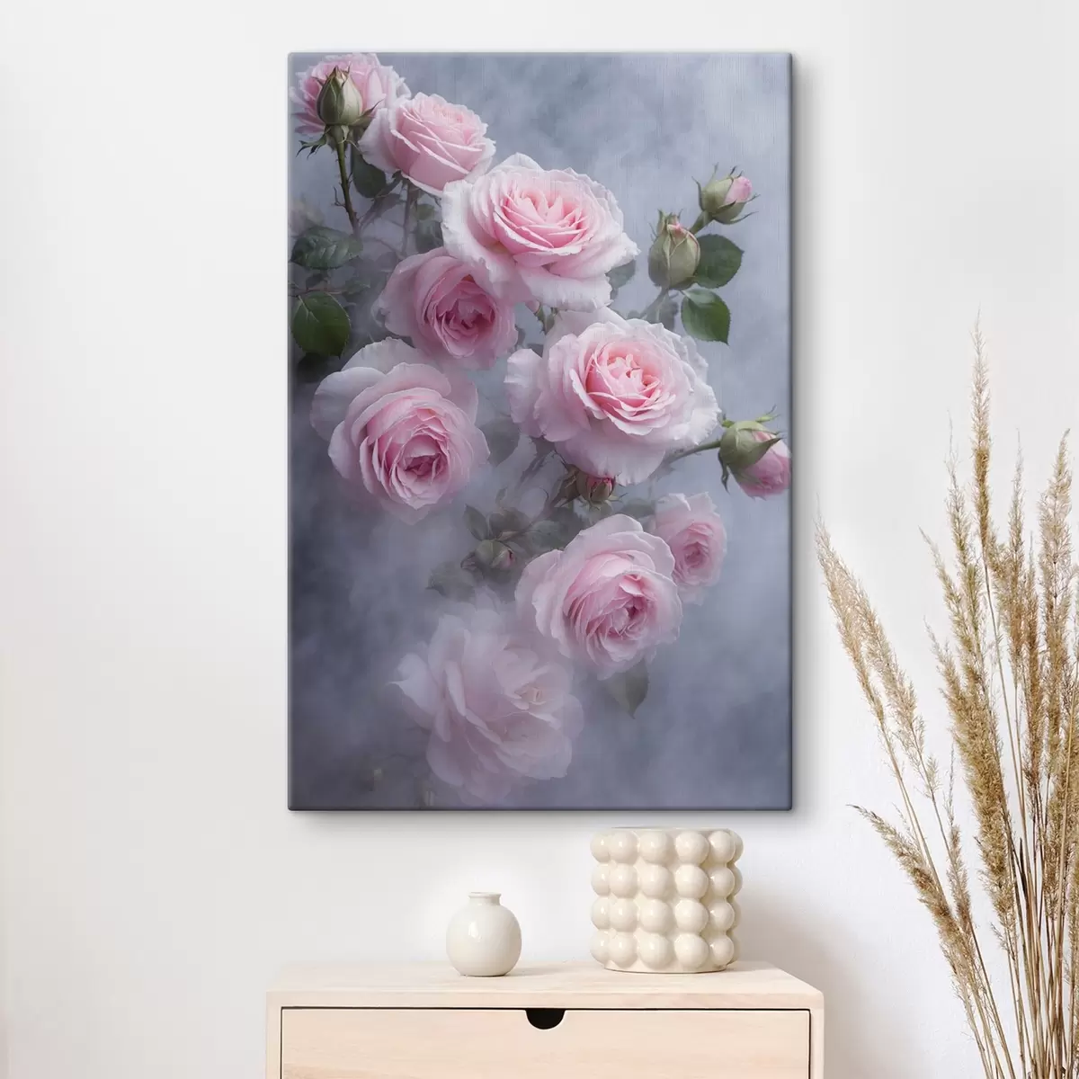 Quadri Rose rosa tenue nella nebbia con foglie verdi Nr s44892
