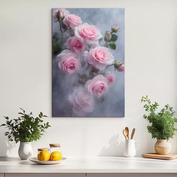 Quadri Rose rosa tenue nella nebbia con foglie verdi Nr s44892