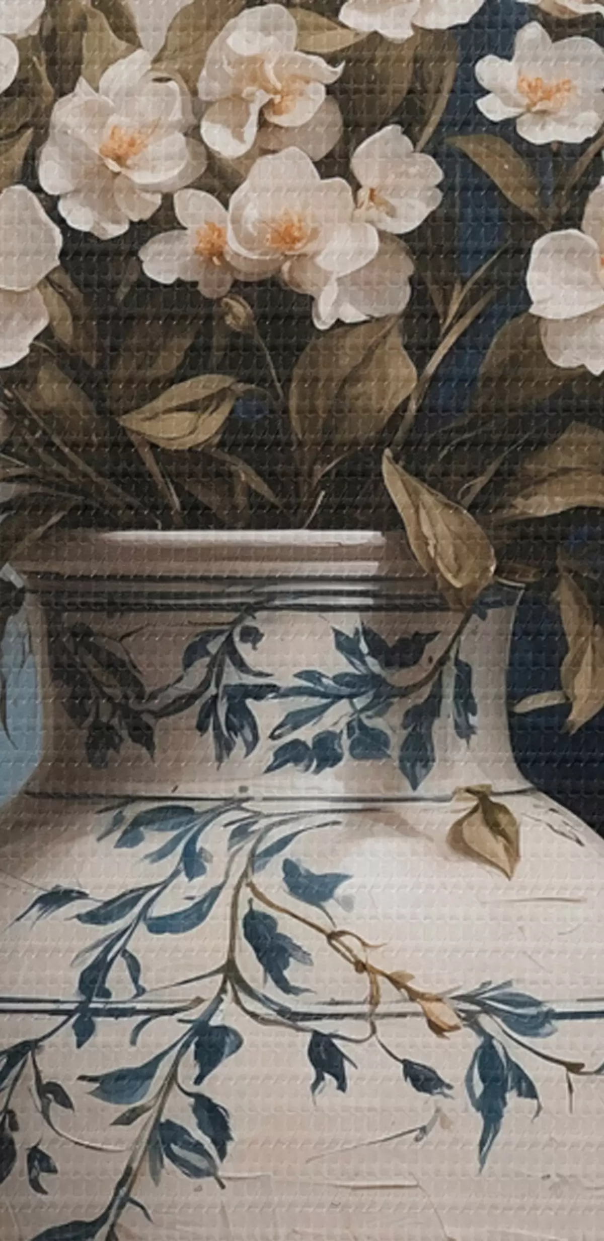 carta da parati Fiori bianchi e gialli in un grande vaso su sfondo blu nr. s44893