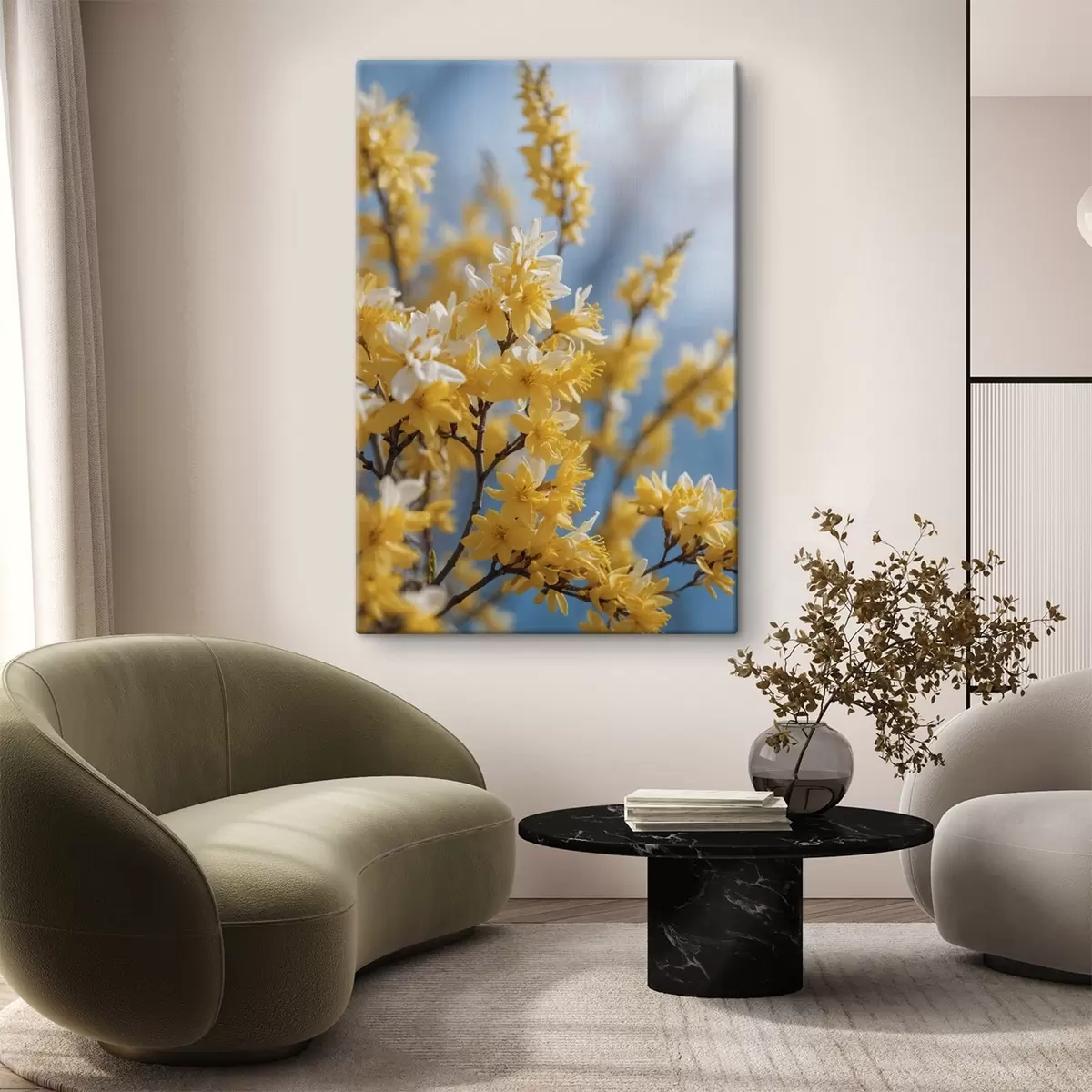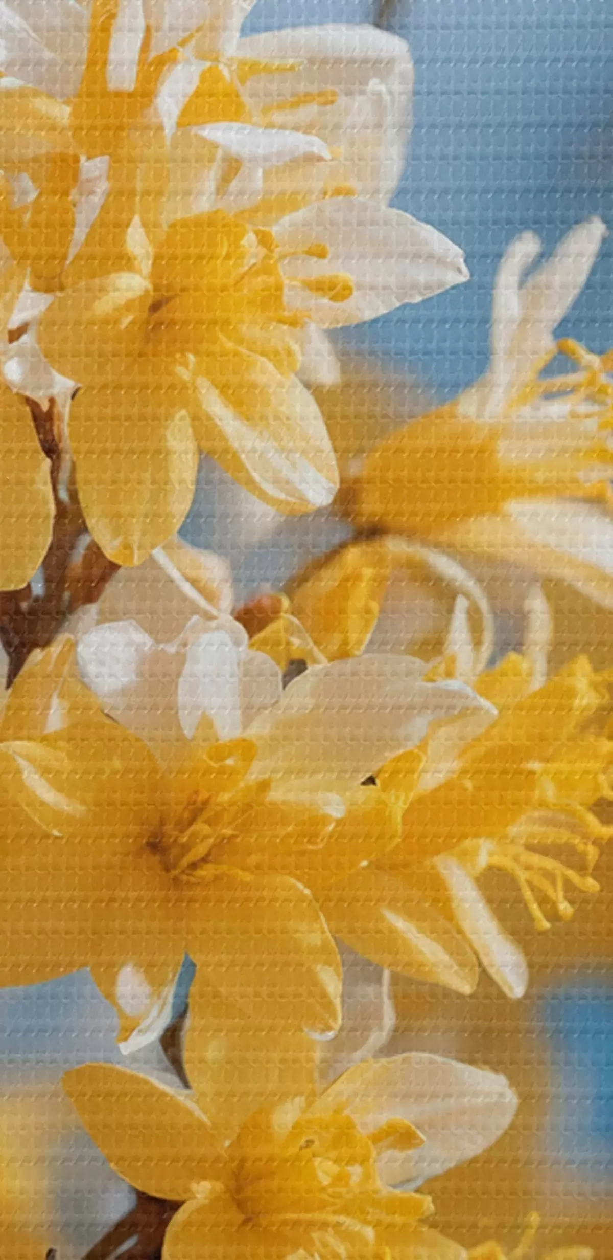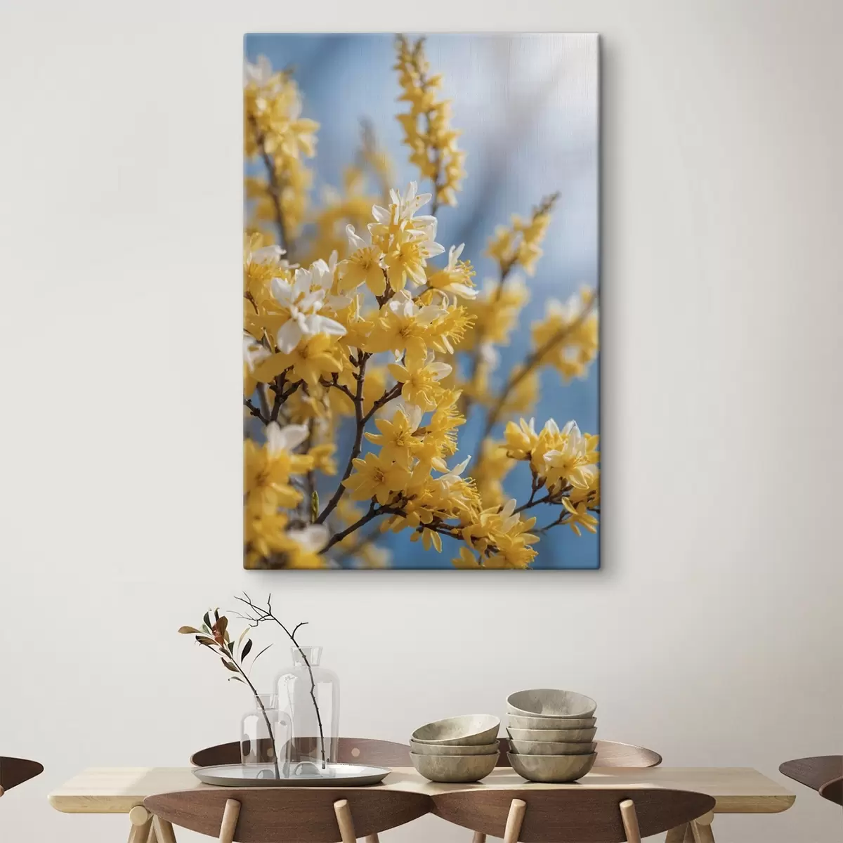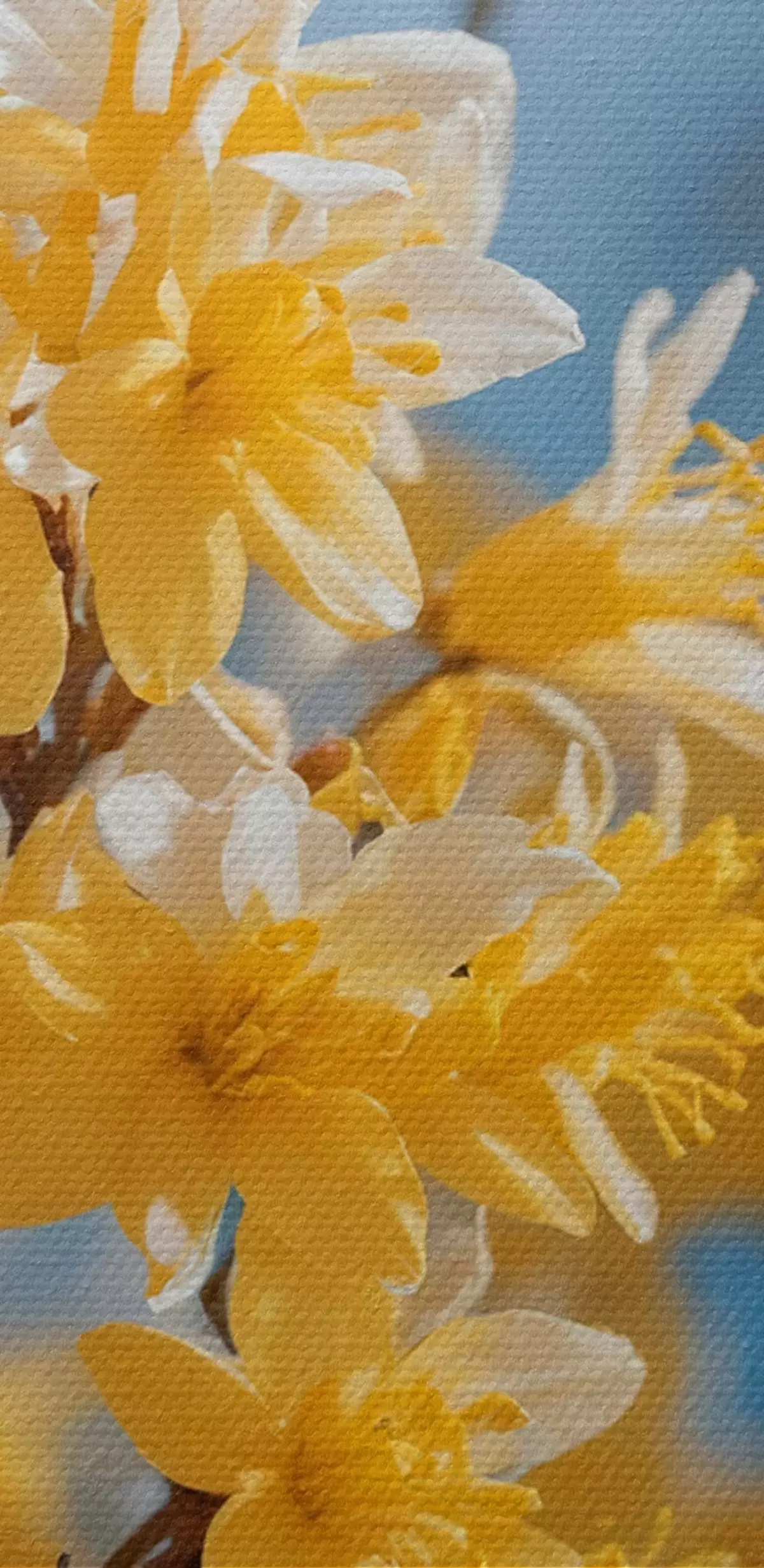 Quadri Fiori gialli su sfondo blu con messa a fuoco morbida Nr s44894