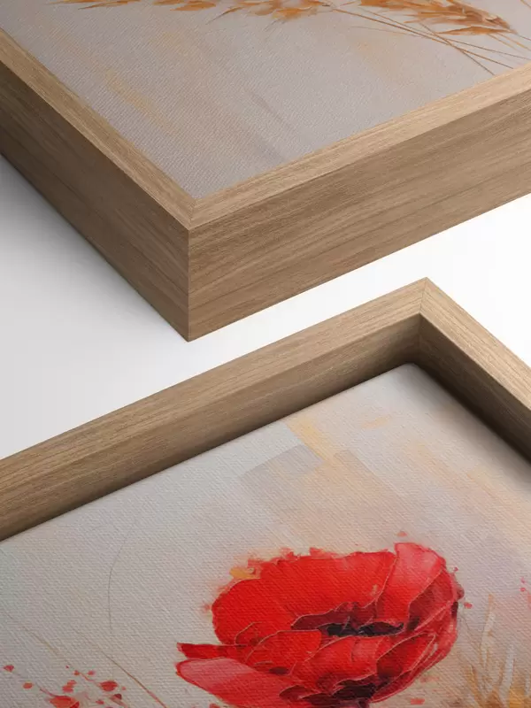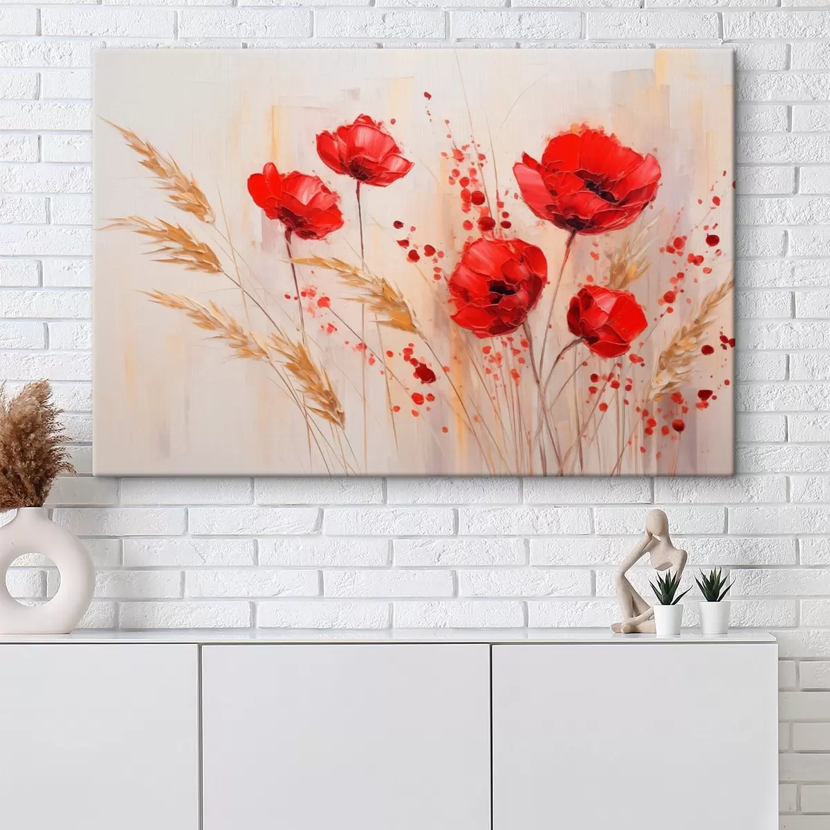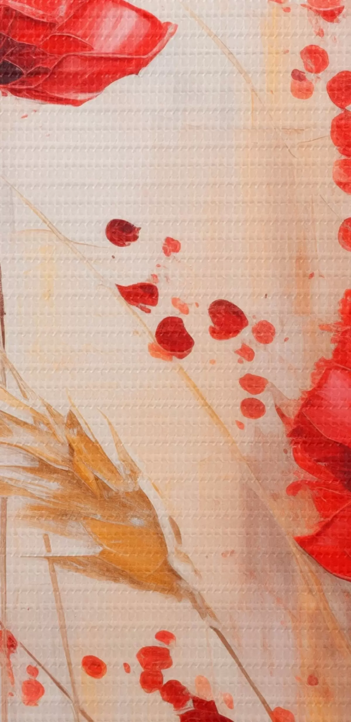 Quadri Fiori di papavero rossi con steli di grano gialli, su uno sfondo morbido e neutro con schizzi di vernice rossa Nr s44926