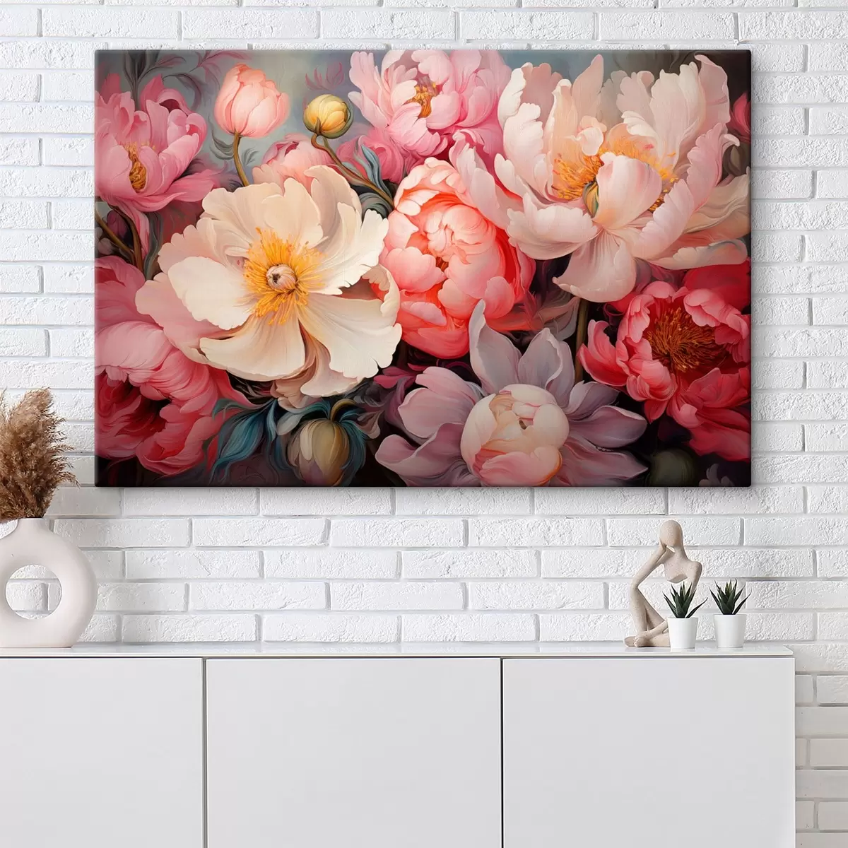 Quadri Peonie lussureggianti nei toni del rosa in stile pittura ad olio Nr s44936