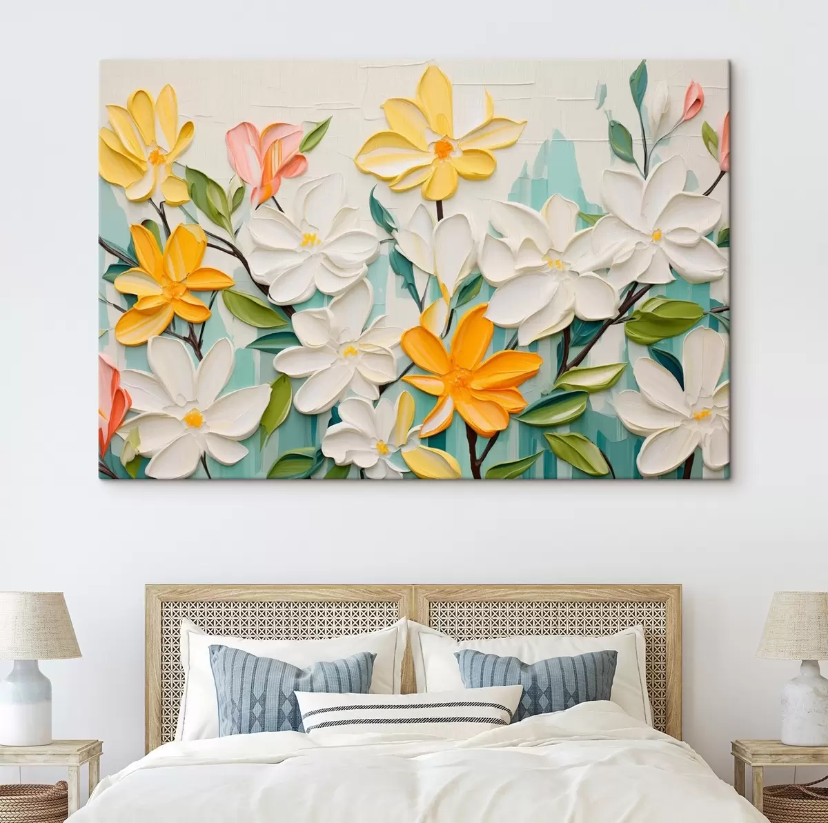 Quadri Fiori in rilievo dai colori vivaci in stile imitazione pennellata Nr s44942