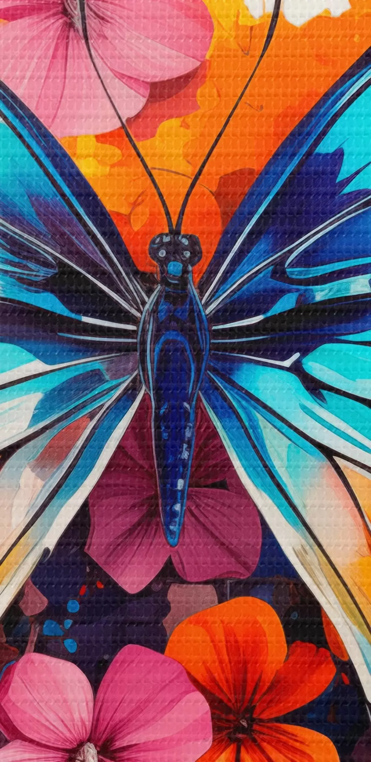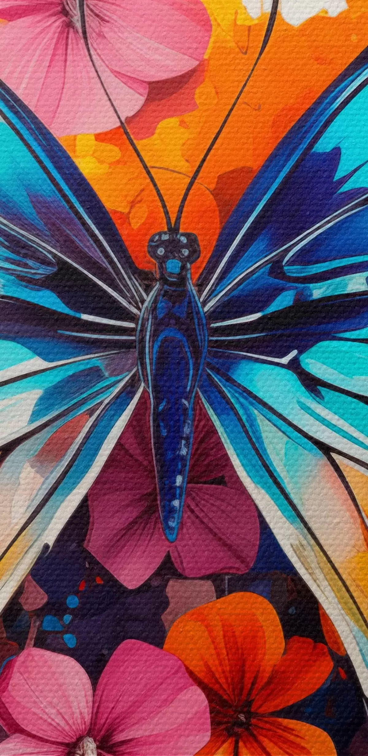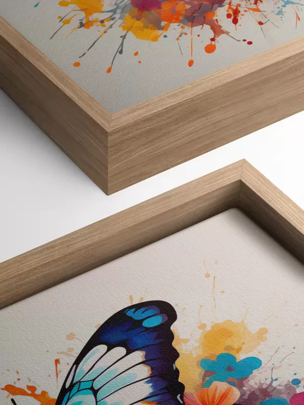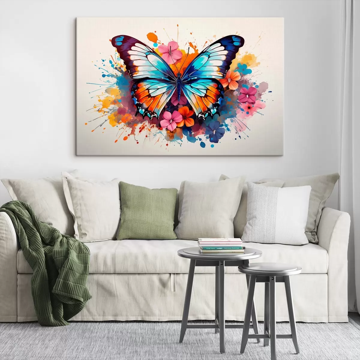 Quadri Composizione dinamica di una farfalla e macchie floreali in stile artistico Nr s44943