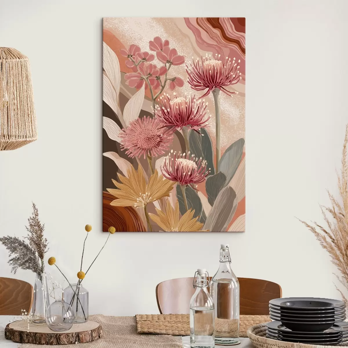 Quadri Bellissimi fiori, disegno ad olio, colori rosso e rosa Nr s44975