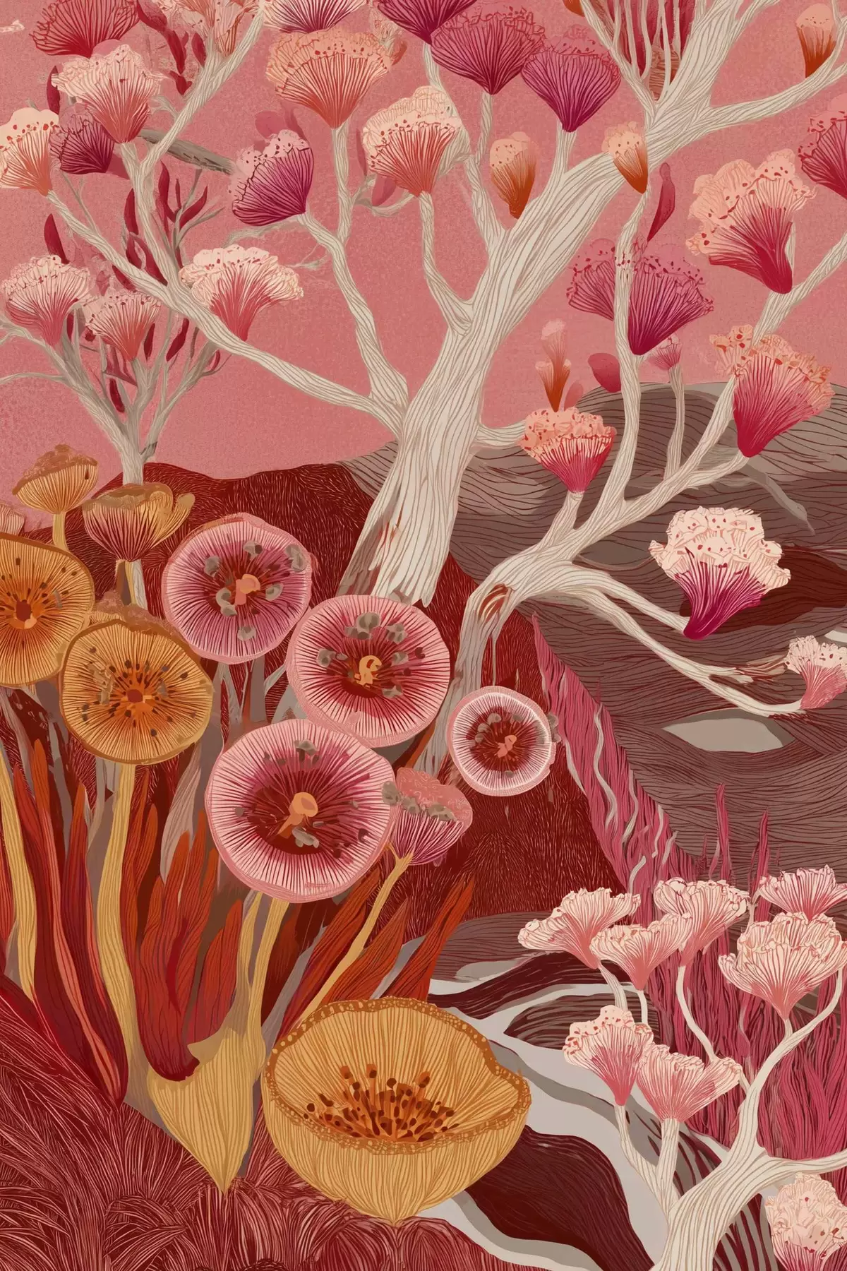 carta da parati Fiori vintage, arte geometrica, disegno in stile acrilico nr. s44976