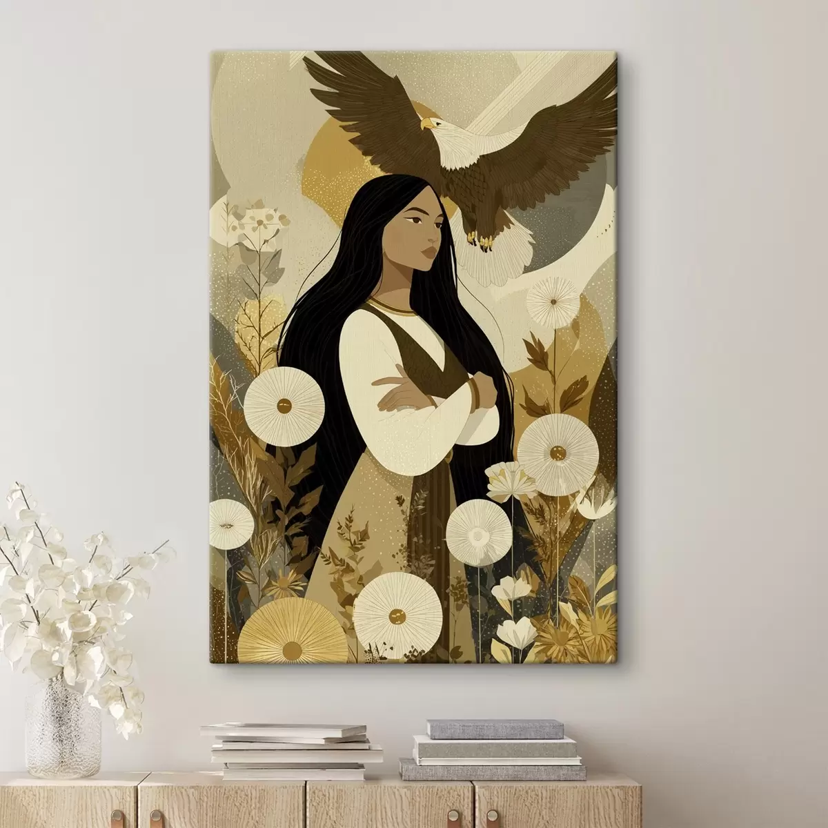 Quadri Donna con aquila in volo, stile tribale, colori beige Nr s44977