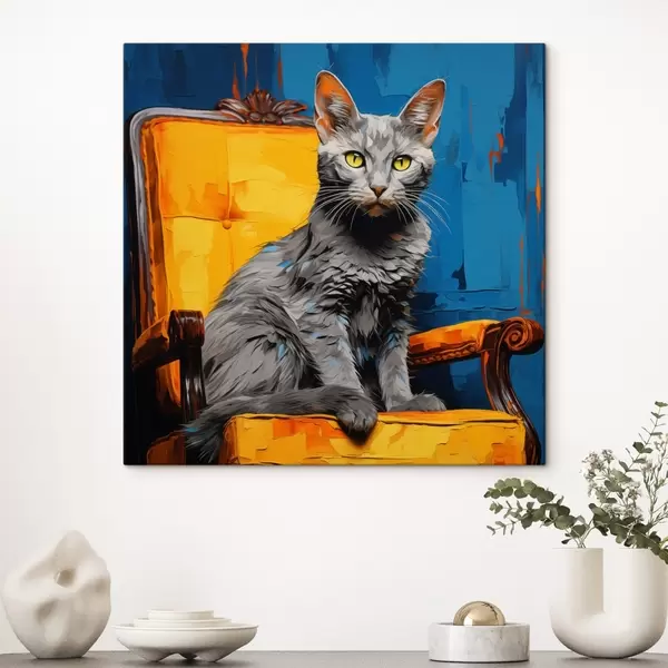 Quadri Ritratto artistico di gatto su sfondo blu Nr s45030