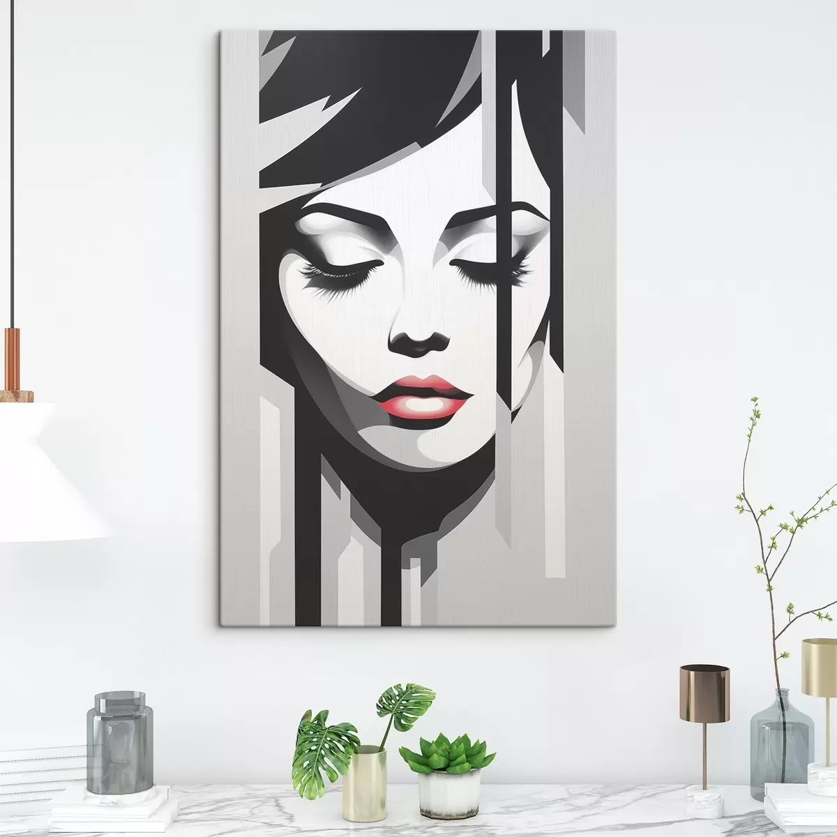 Quadri Volto in bianco e nero con occhi chiusi Nr s45076