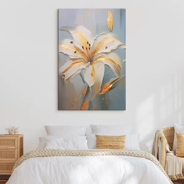 Quadri Giglio bianco con tratti gialli su sfondo blu Nr s45077