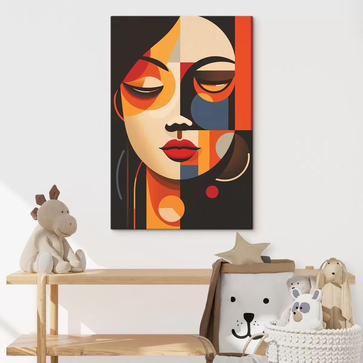 Quadri Volto femminile geometrico dai colori caldi Nr s45087