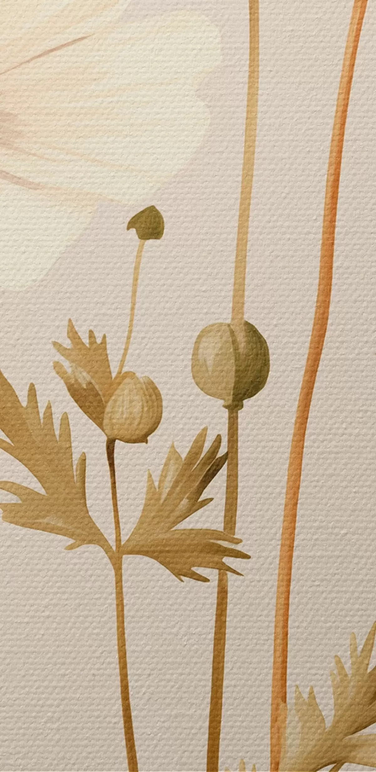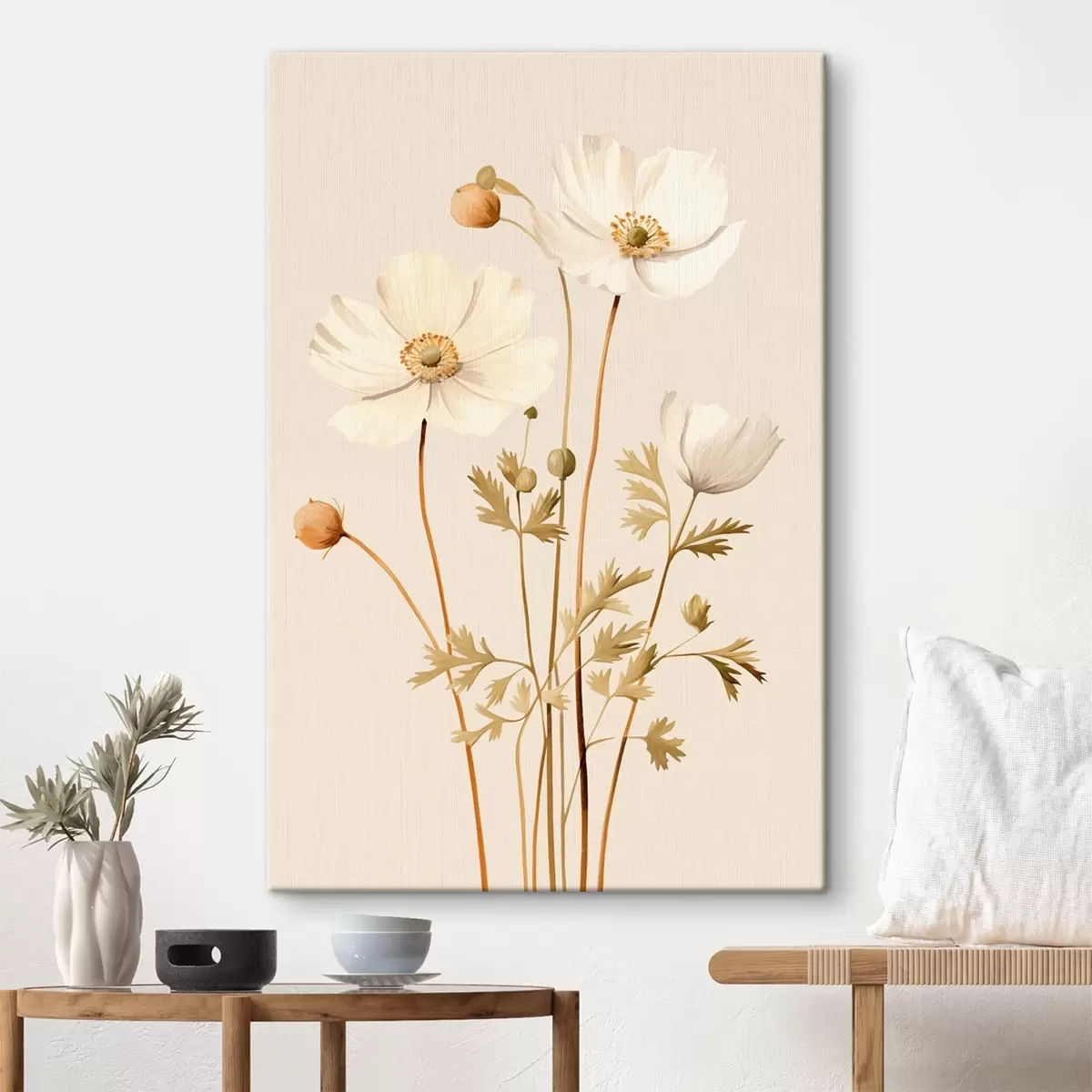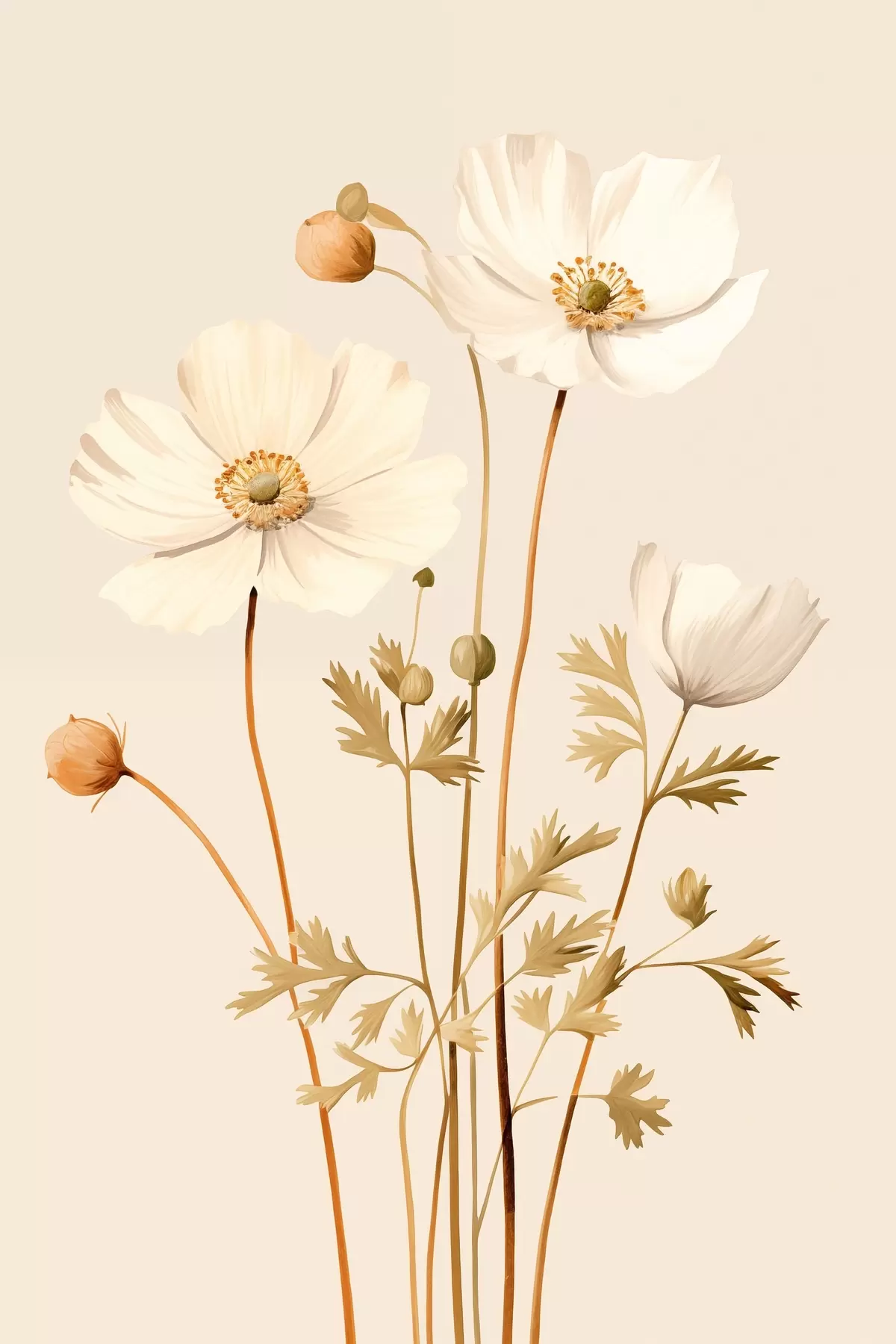 Quadri fiore, botanica, sfondo beige, toni tenui, petali, pianta, vintage, minimale Nr s45099