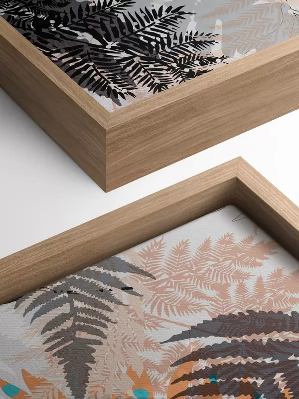 Quadri fogliame della giungla, stile moderno, line art, piante stratificate, colori tenui, natura Nr s45102