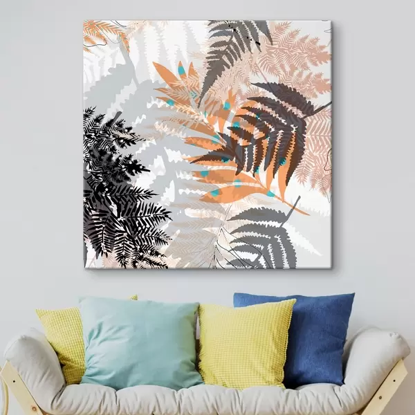 Quadri fogliame della giungla, stile moderno, line art, piante stratificate, colori tenui, natura Nr s45102