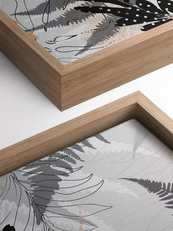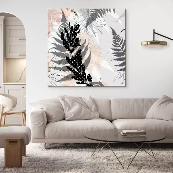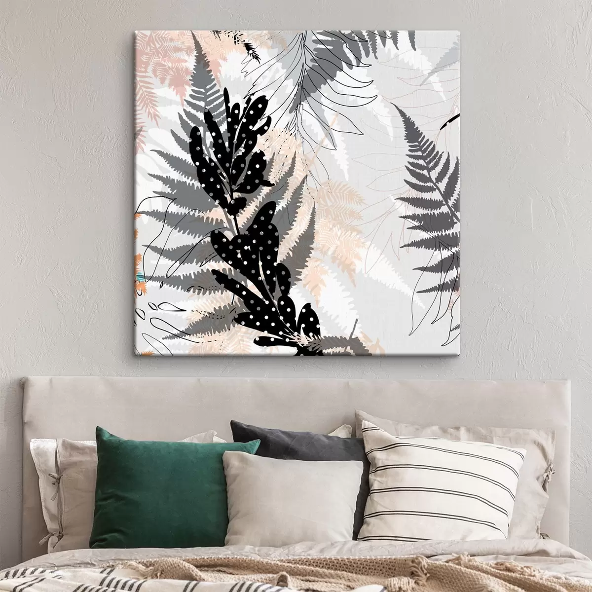Quadri stampa naturalistica, fogliame decorativo, mix di giungla, forme di felce, tavolozza neutra, arte delle foglie Nr s45104