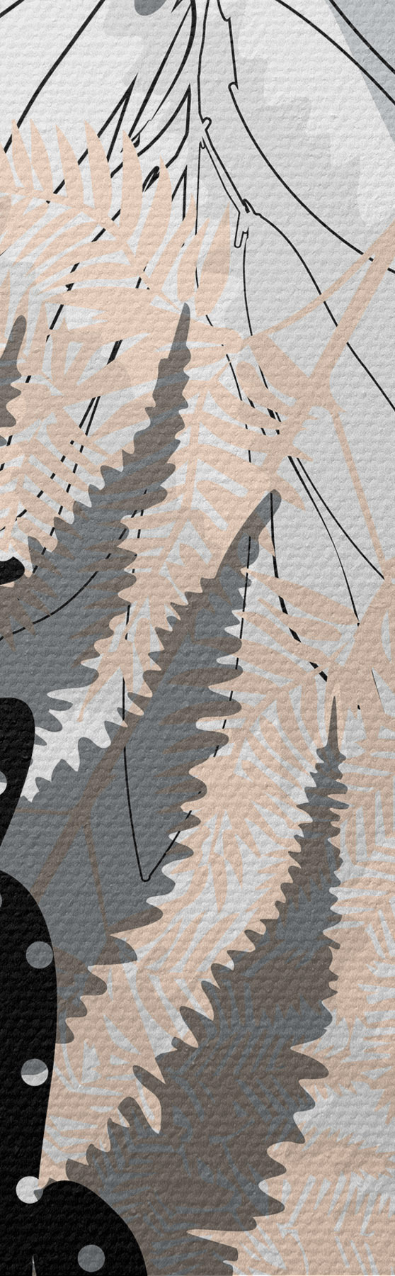 carta da parati stampa naturalistica, fogliame decorativo, mix di giungla, forme di felce, tavolozza neutra, arte delle foglie nr. s45104