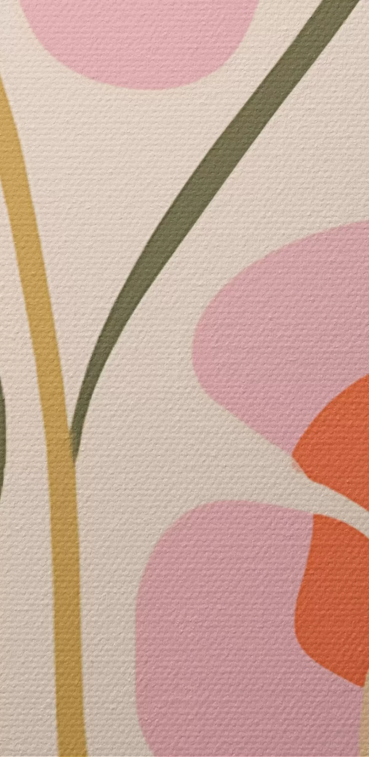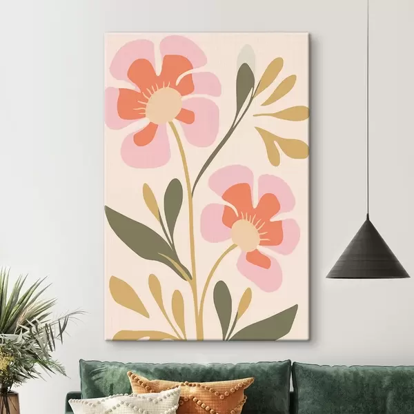 Quadri Fiori stilizzati rosa e arancione con foglie verdi Nr s45140