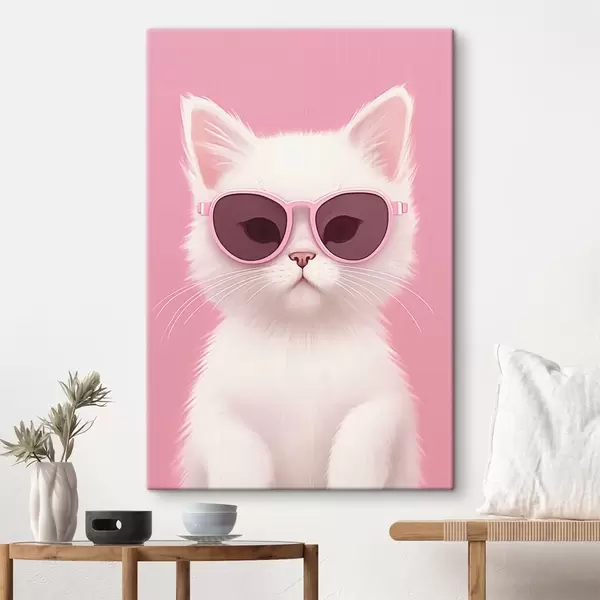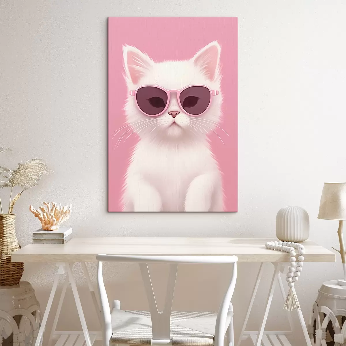 Quadri Gatto bianco con occhiali rosa Nr s45145