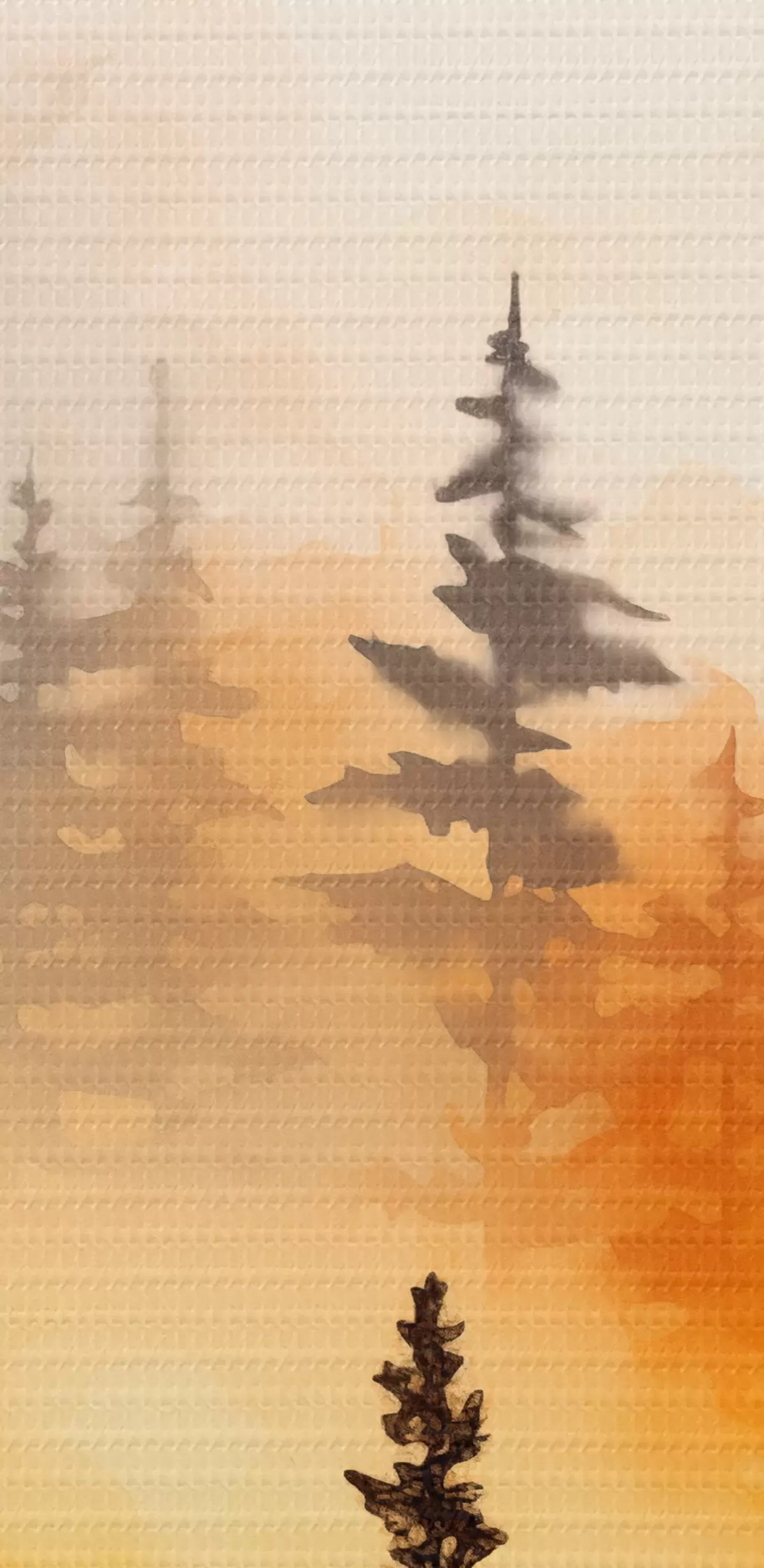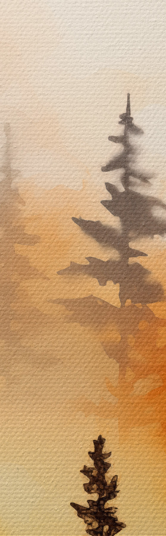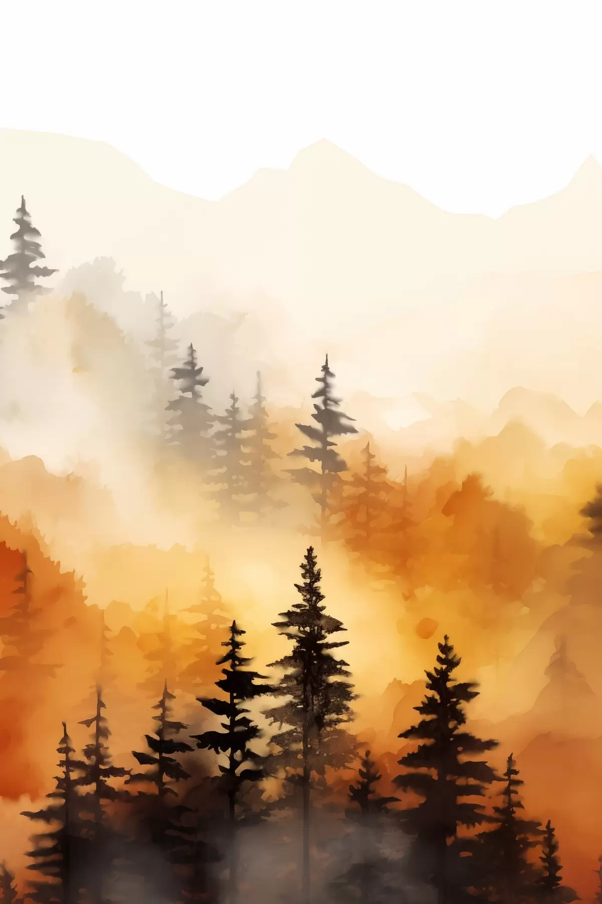 carta da parati Un paesaggio dipinto ad acquerello imitazione di una foresta con alti pini e montagne sullo sfondo nr. s45170