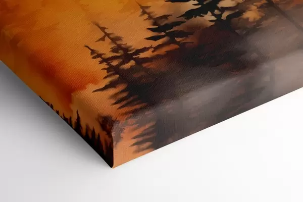 Quadri Un paesaggio dipinto ad acquerello imitazione di una foresta con alti pini e montagne sullo sfondo Nr s45170