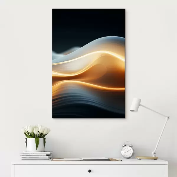 Quadri Forme astratte e fluide con linee arancioni, curve e linee morbide, composizione dinamica, sfondo scuro Nr s45183