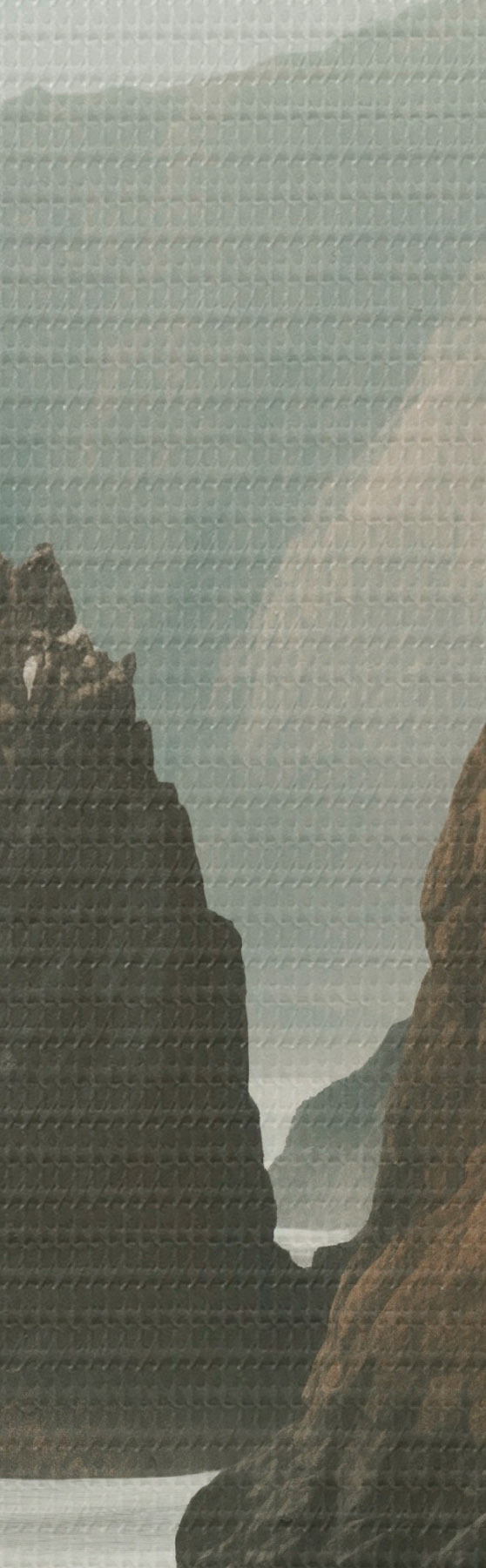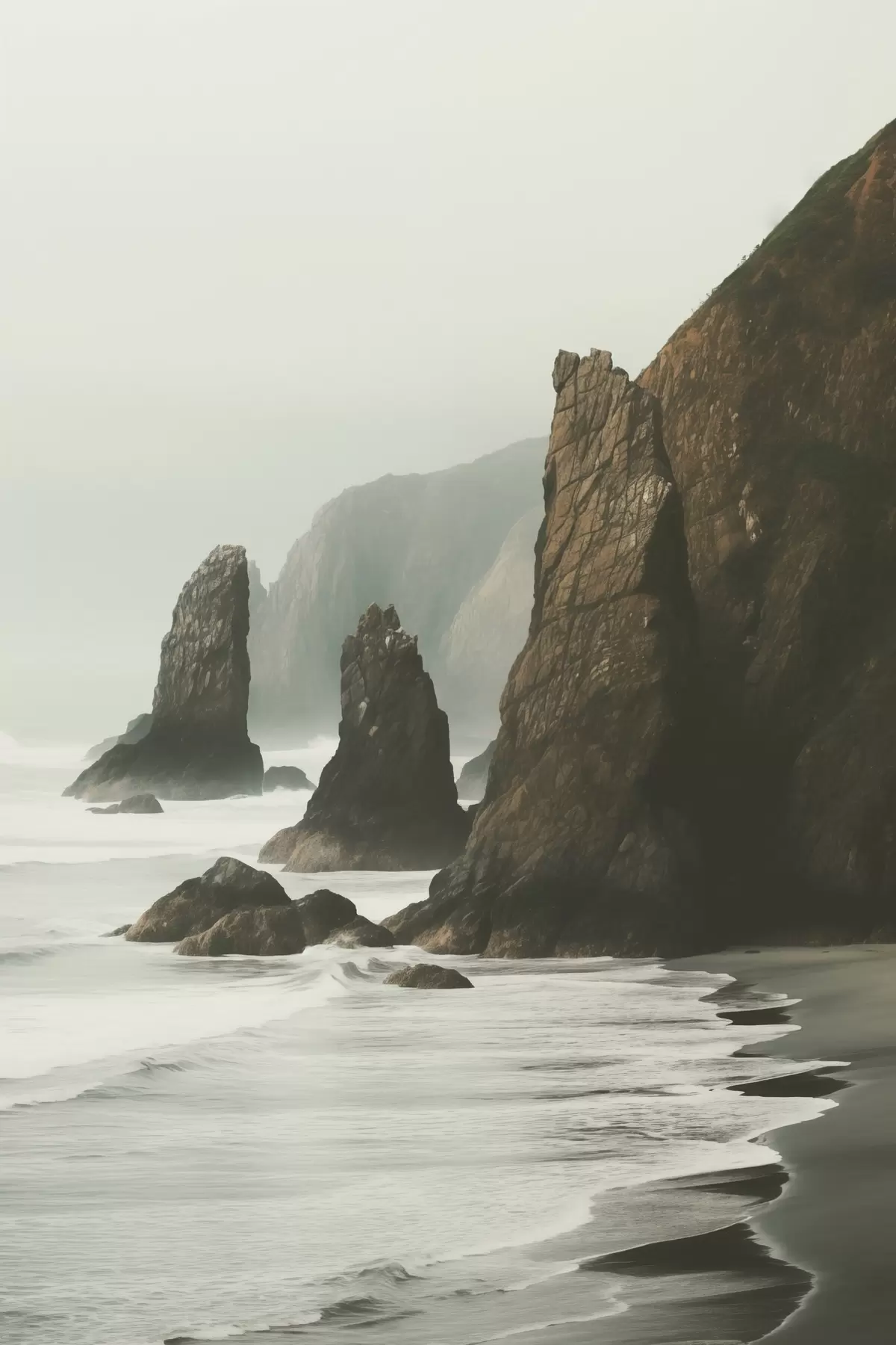 carta da parati Scogliere rocciose e costa marina, onde che si infrangono sulla riva, paesaggio dall'atmosfera lunatica, toni terrosi nr. s45193