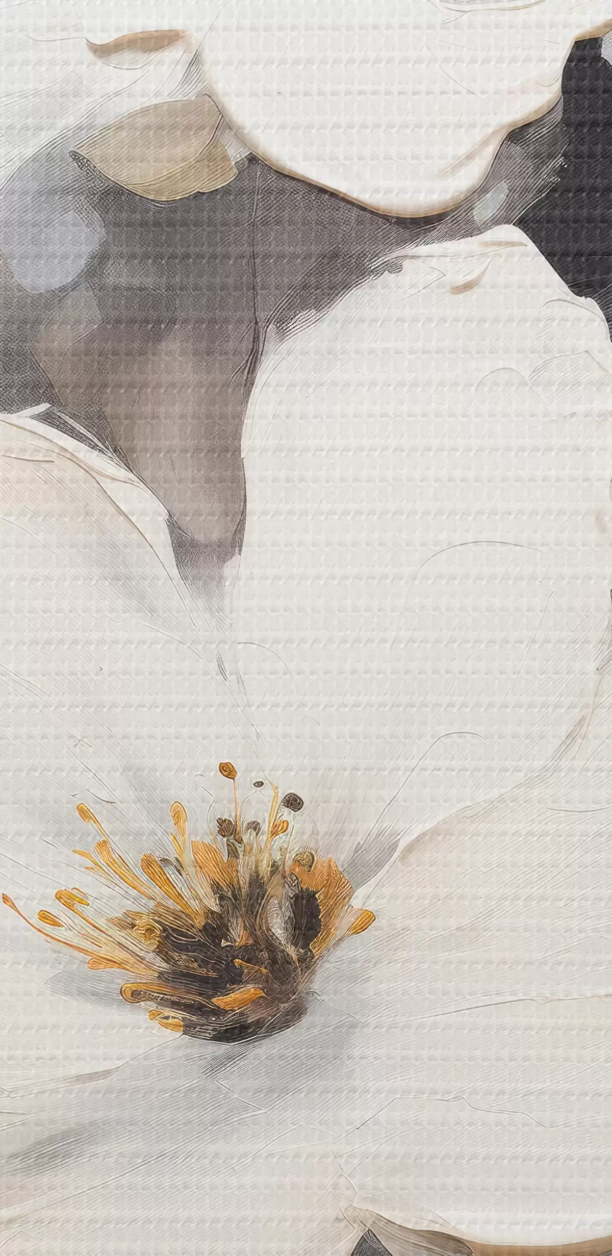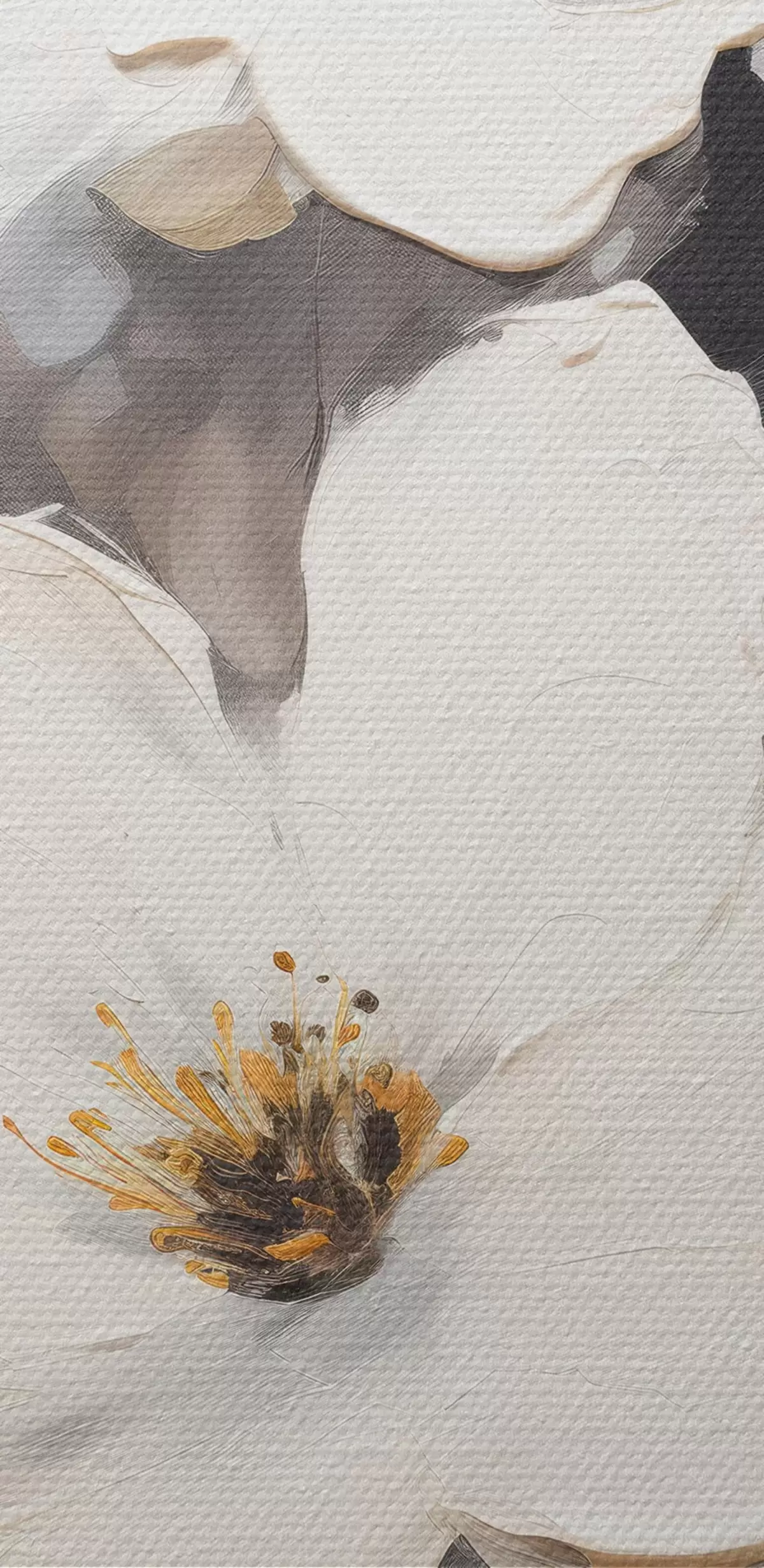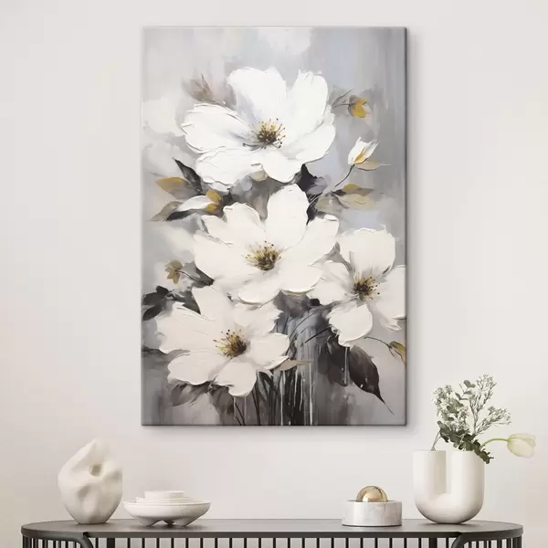 Quadri Fiori bianchi: pittura volumetrica su sfondo grigio Nr s45252