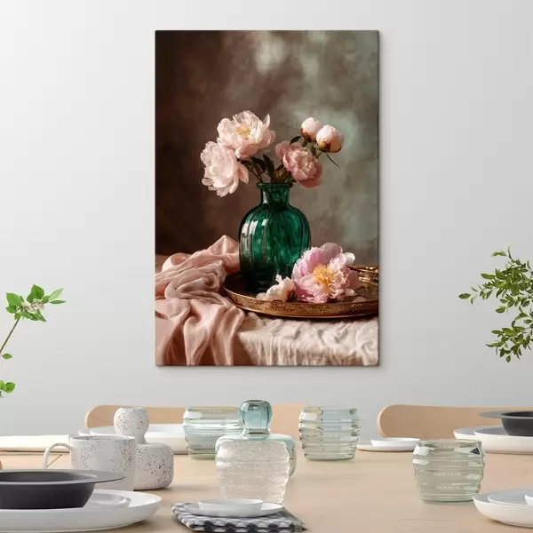 Quadri Delicate peonie rosa in un vaso color smeraldo Nr s45261