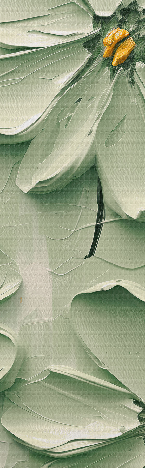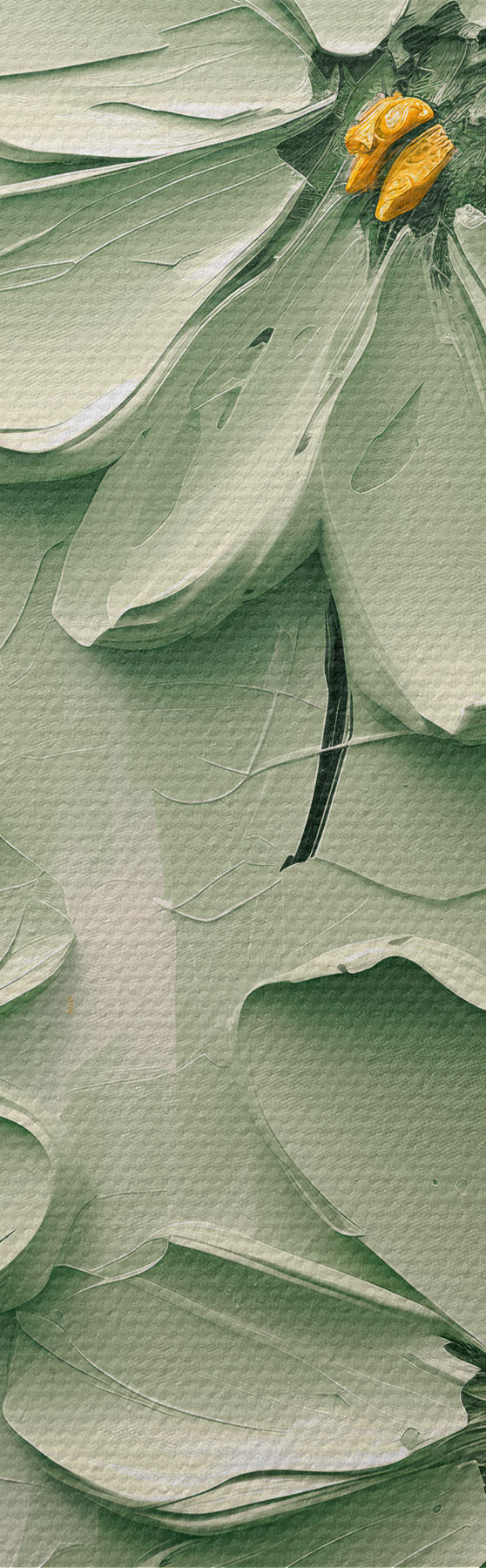 carta da parati Fiori verdi con centro giallo dipinti con pennellate spesse su sfondo chiaro nr. s45265