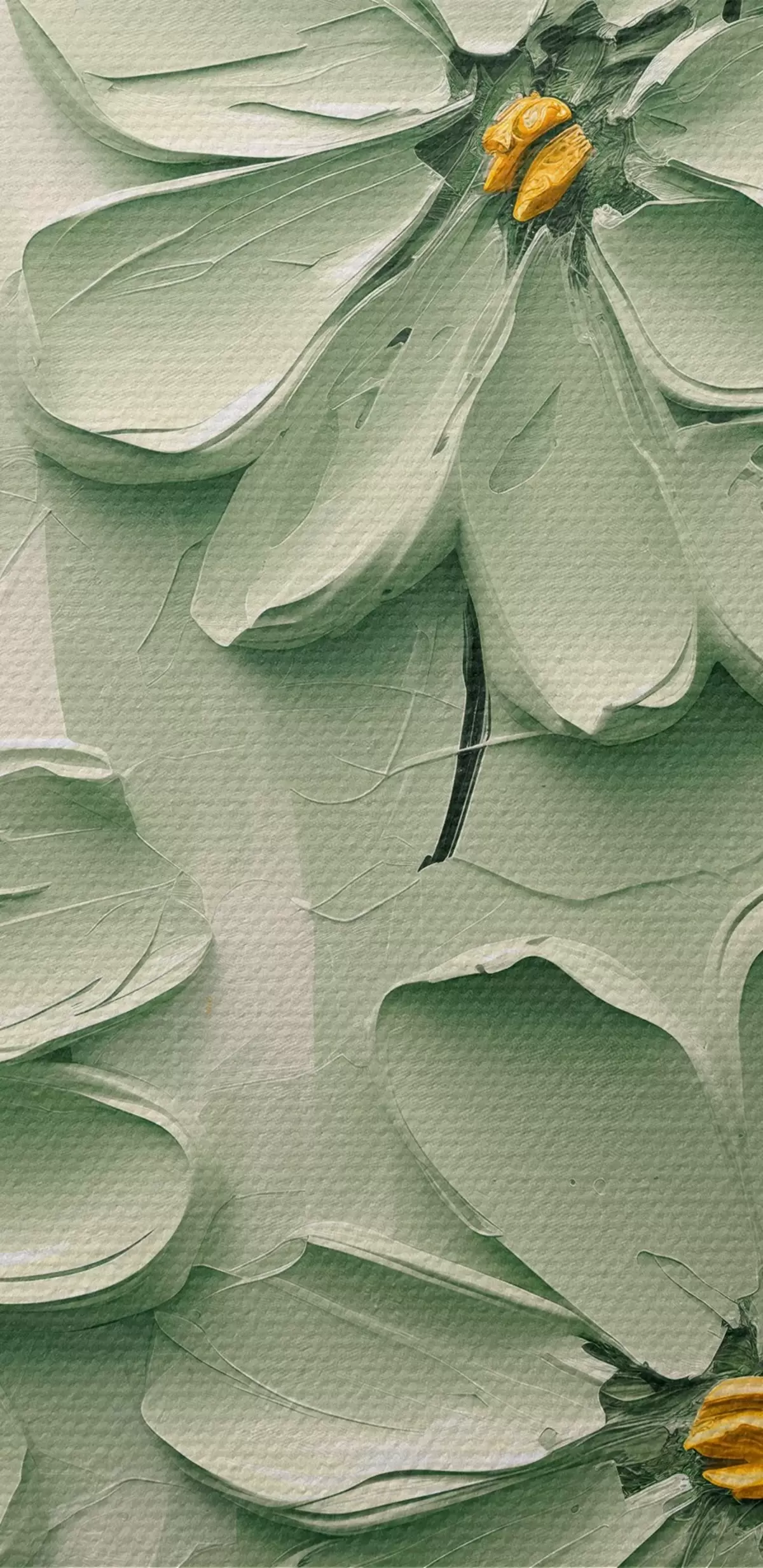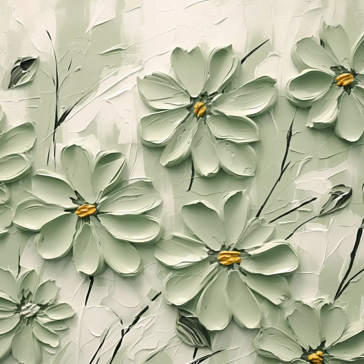Quadri Fiori verdi con centro giallo dipinti con pennellate spesse su sfondo chiaro Nr s45265