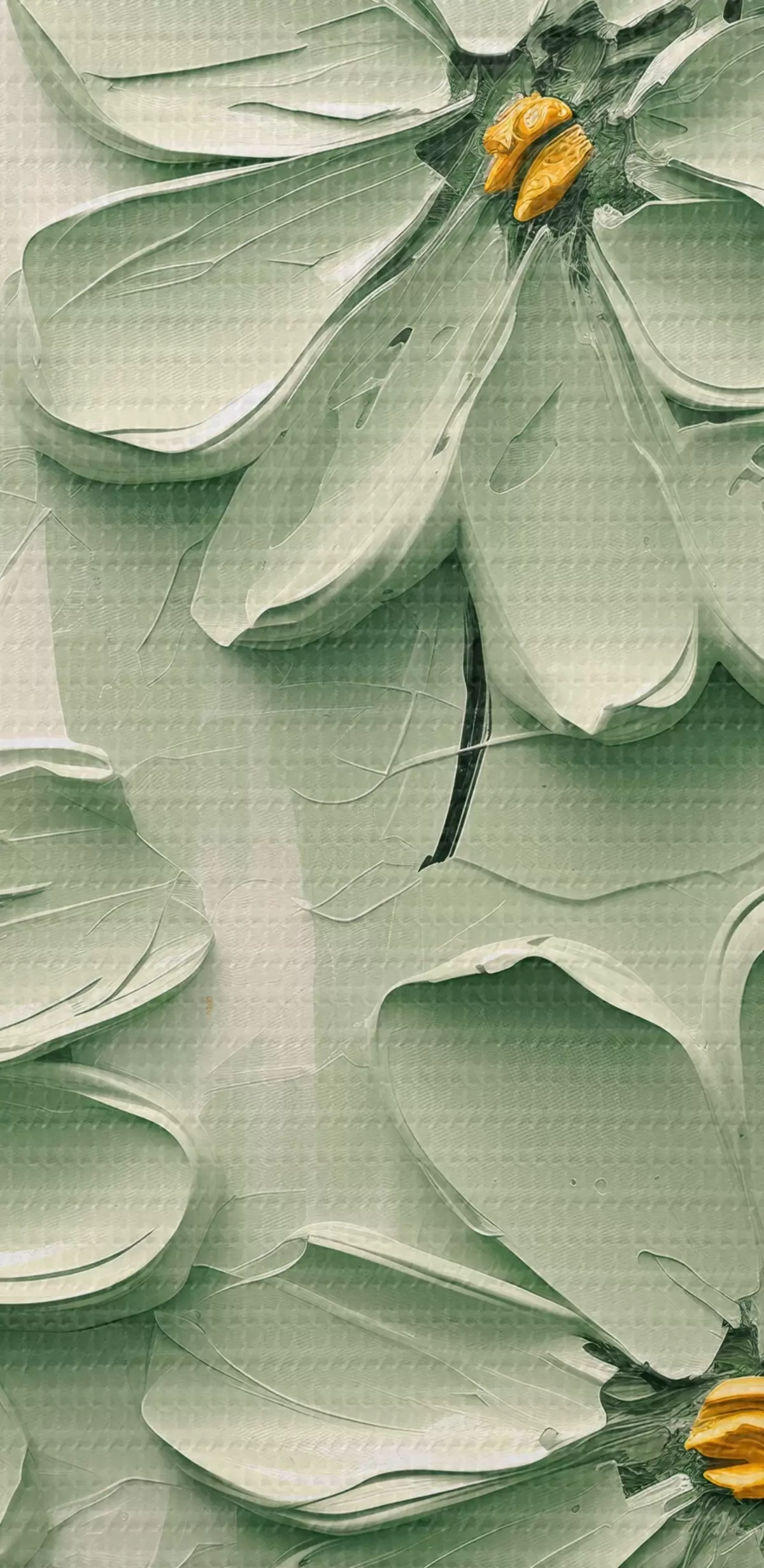 carta da parati Fiori verdi con centro giallo dipinti con pennellate spesse su sfondo chiaro nr. s45265