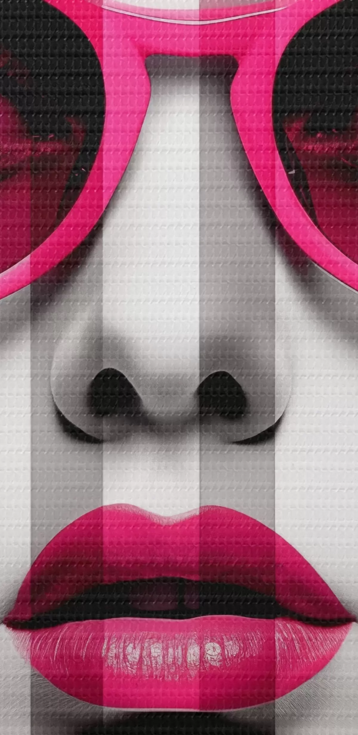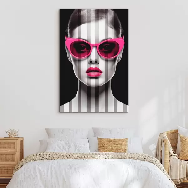 carta da parati Donna con occhiali rosa a righe bianche e nere nr. s45315