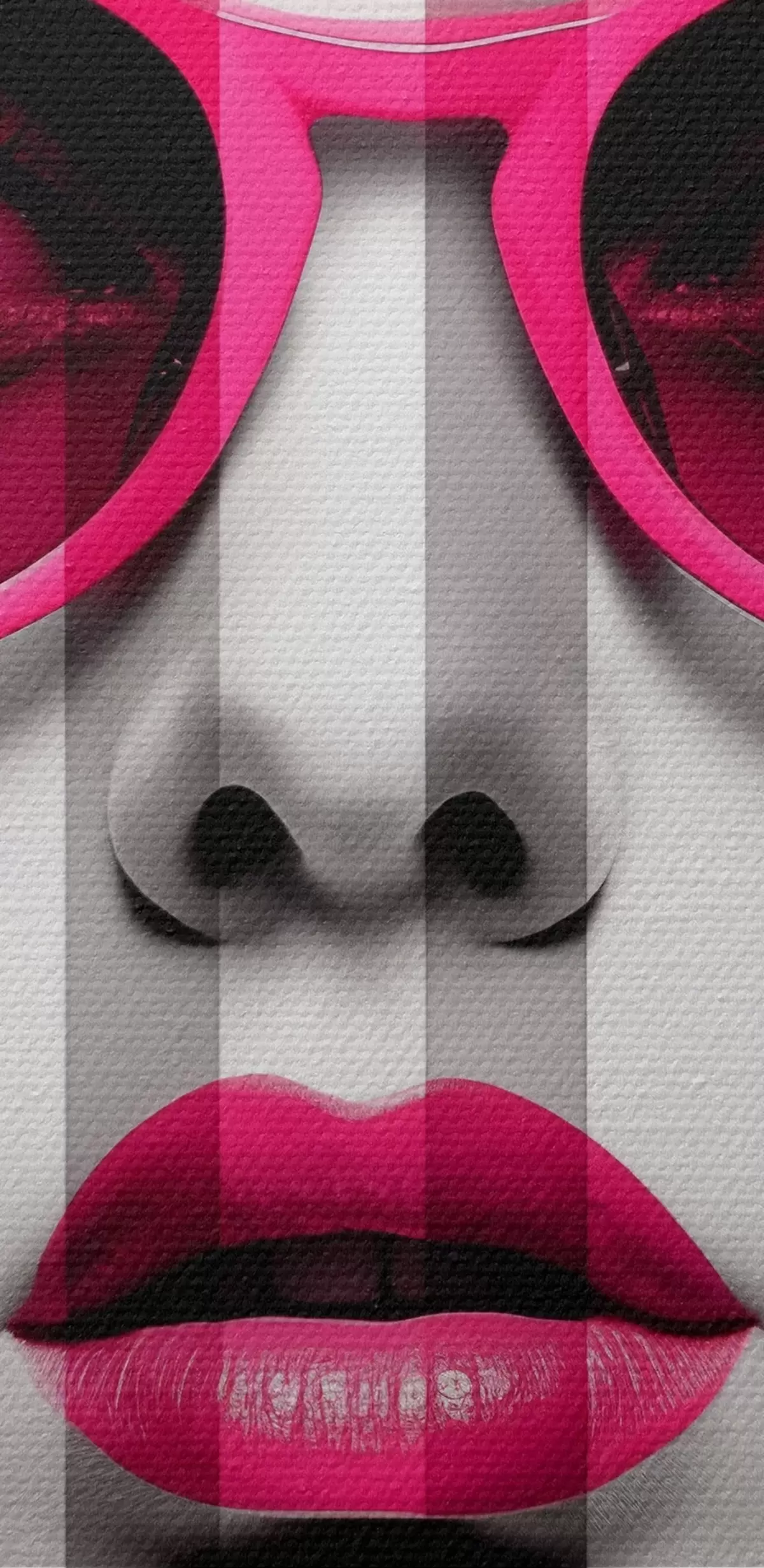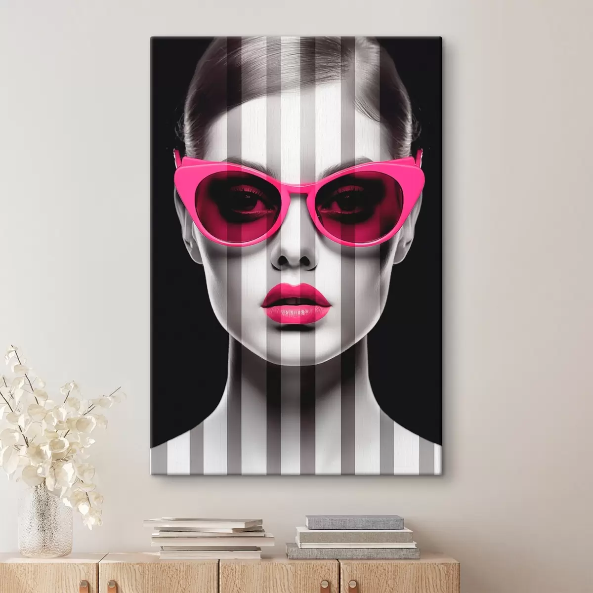 Quadri Donna con occhiali rosa a righe bianche e nere Nr s45315