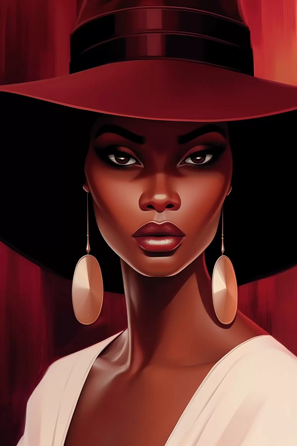 Quadri Donna con cappello e orecchini tondi Nr s45325