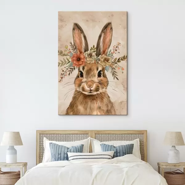 Quadri Lepre carina con fiori in stile acquerello Nr s45332