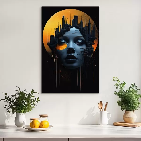 Quadri Persone, volto di ragazza su sfondo cittadino, astratto Nr s45341